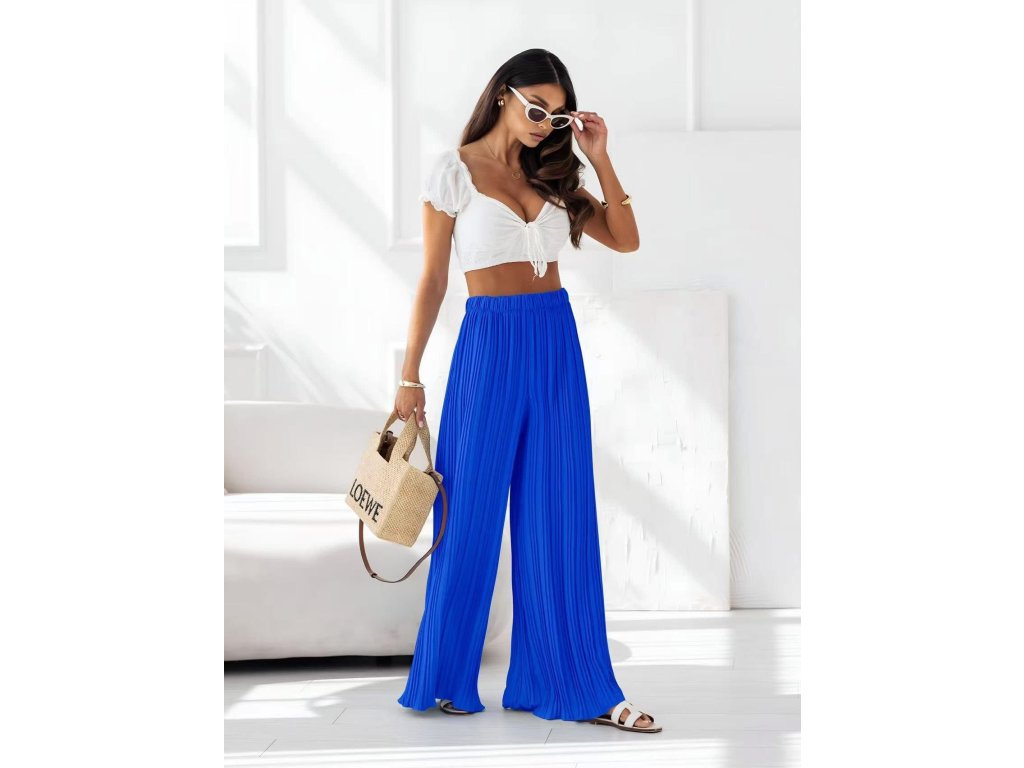 Objevte pohodlné a stylové plisované kalhoty s volným střihem a pružnou gumou v pase, která se dokonale přizpůsobí různým postavám. Díky univerzální velikosti jsou kalhoty vhodné pro mnoho typů postavy – rozměry: pas 76–130 cm, boky 160 cm, délka 105 cm. Vyrobené ze 100% polyesteru, jsou lehoučké a příjemné na nošení. K dostání v různých barvách, aby skvěle doplnily váš šatník.