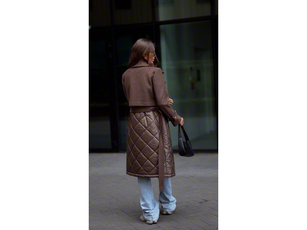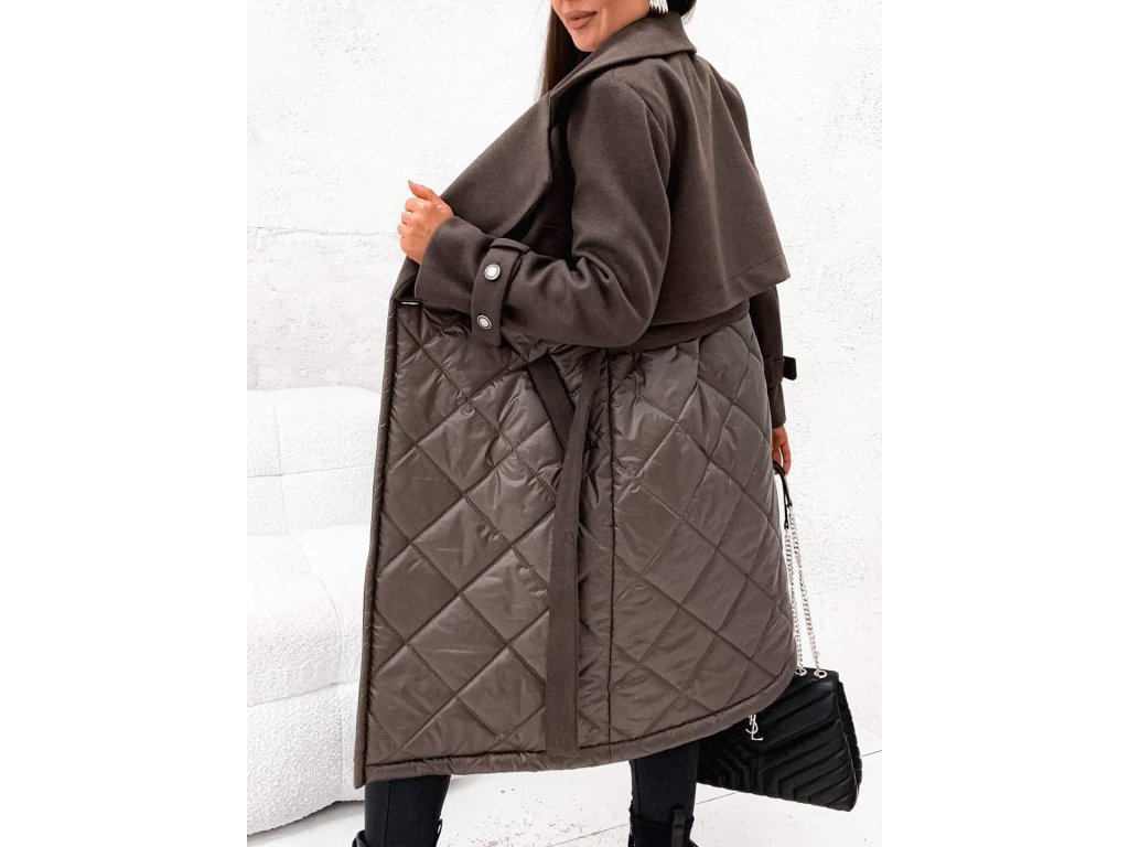 Tento elegantní kabát s prodlouženou délkou od polského výrobce STAYHERE představuje perfektní kombinaci klasického stylu a moderních prvků. Horní část z vlny dodává luxusní vzhled a spolehlivě zahřeje, zatímco prošívaná spodní část zajišťuje extra ochranu proti chladu a přináší trendový prvek do celkového designu.