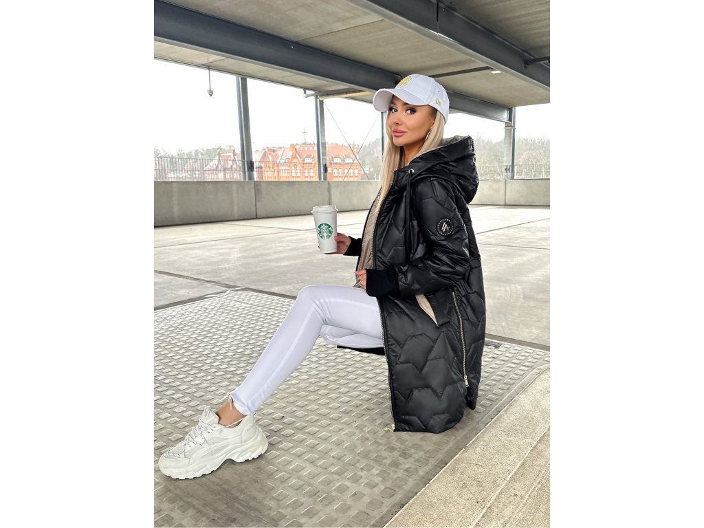 Klíčová slova: prošívaná bunda, dlouhá bunda, kapuce, zipy po stranách, nášivka s logem, podzimní bunda, zimní bunda, polyester, velikosti S – 7XL