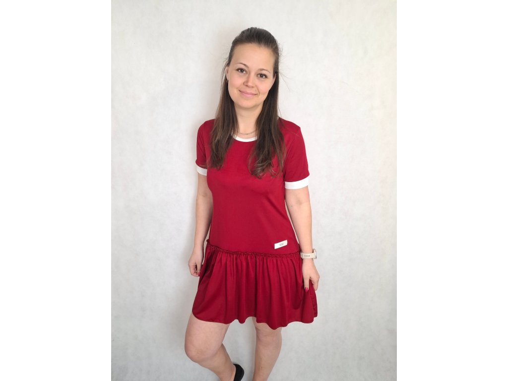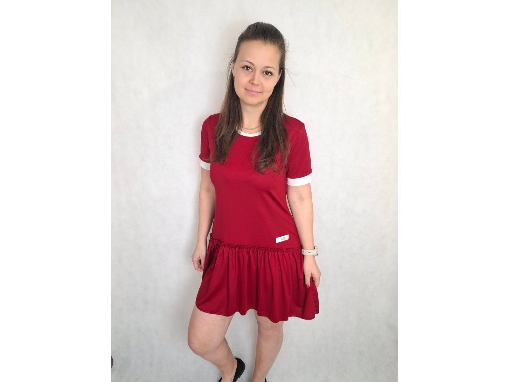 Šaty z příjemné bavlny s krátkými rukávy, zdobené třpytivým lemem u výstřihu i rukávů, a doladěné elegantním volánem pro dokonalý vzhled.