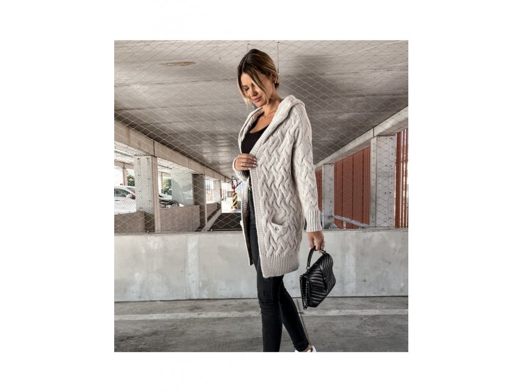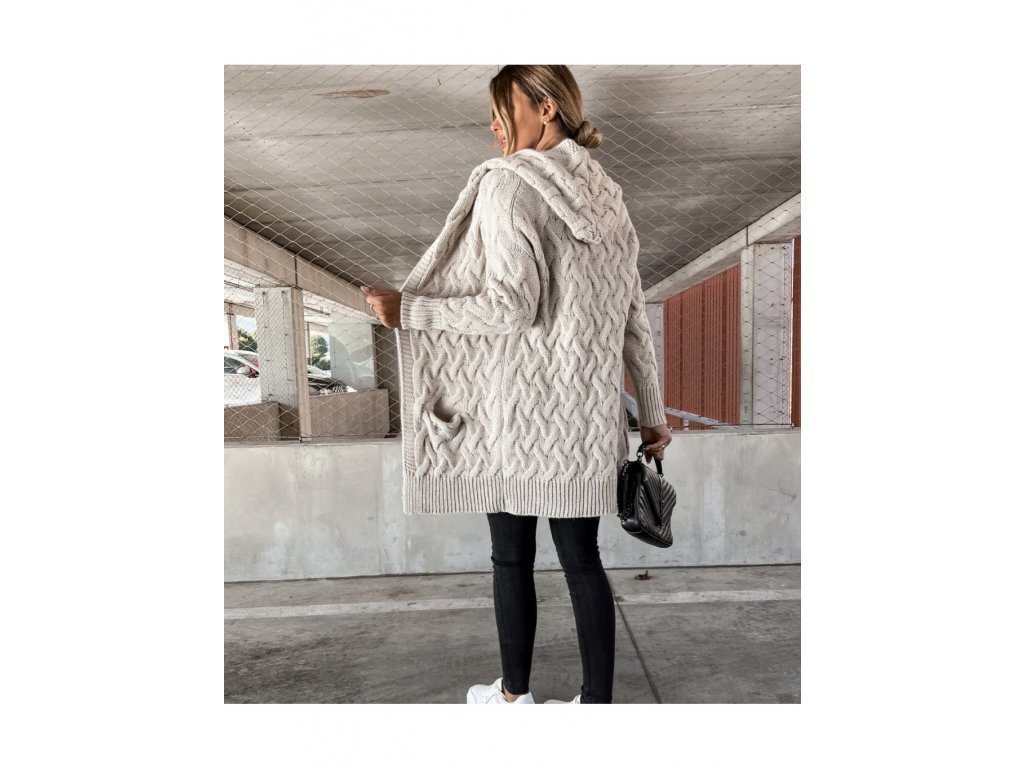 Objevte nadčasový dámský kardigan s kapucí, který si vás získá nejen svým copánkovým vzorem, ale i hřejivým a silným materiálem. Díky univerzální velikosti padne krásně na různé typy postav a je vhodný až do velikosti XL. Rozměry: prsa 106 cm, délka 93 cm. Materiálové složení 70% akryl a 30% polyamid zajišťuje měkkost, odolnost i pohodlné nošení. Tento slušivý kardigan snadno zkombinujete s džínami, legínami i šaty, a tak se stane univerzálním kouskem vašeho šatníku.
