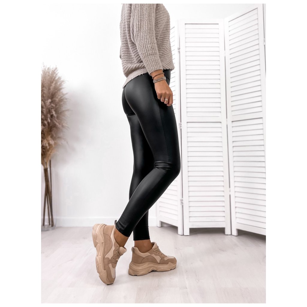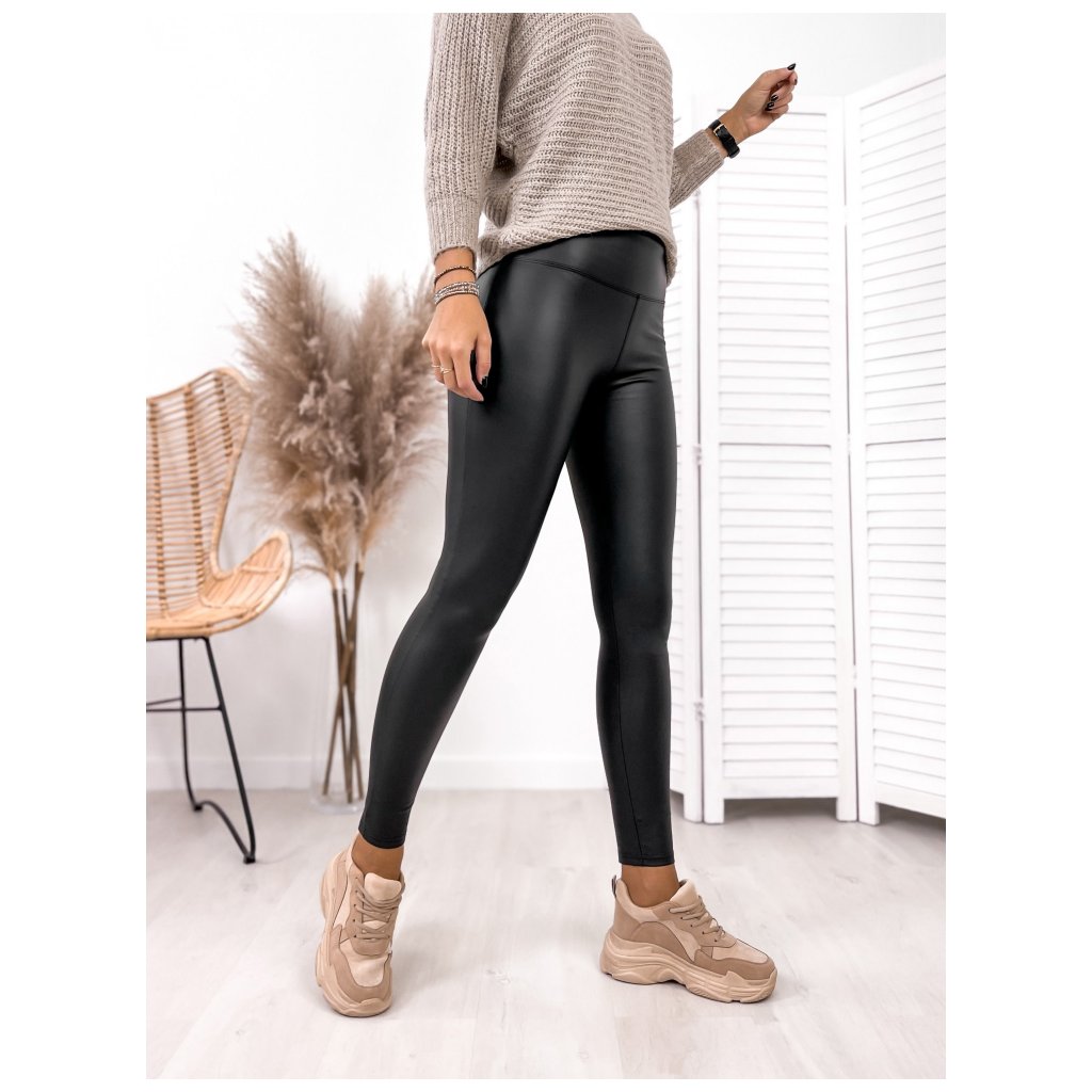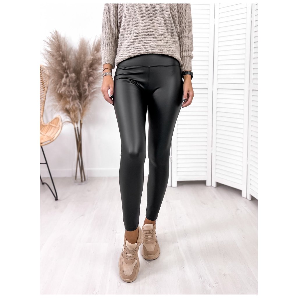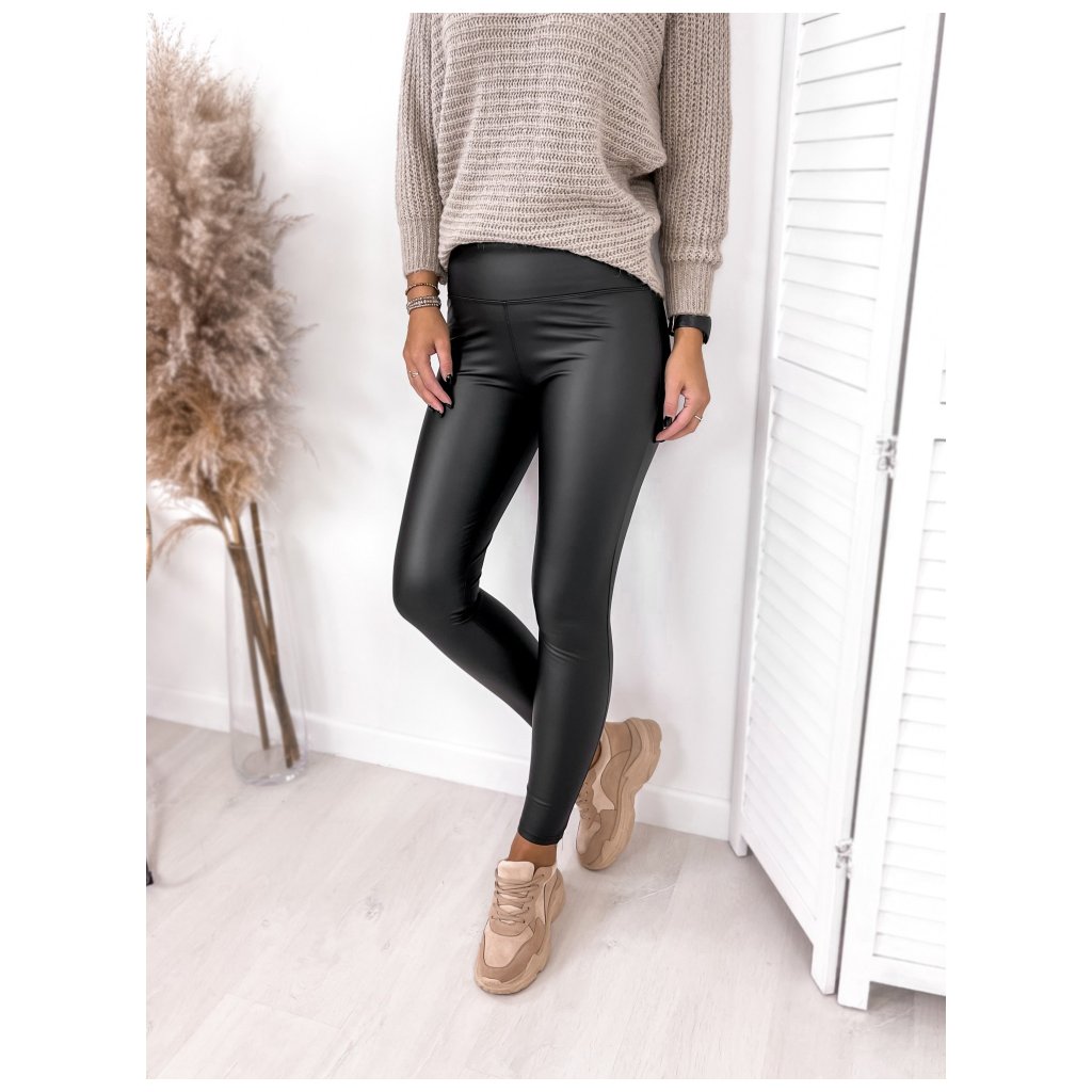 Zateplené koženkové legíny černé