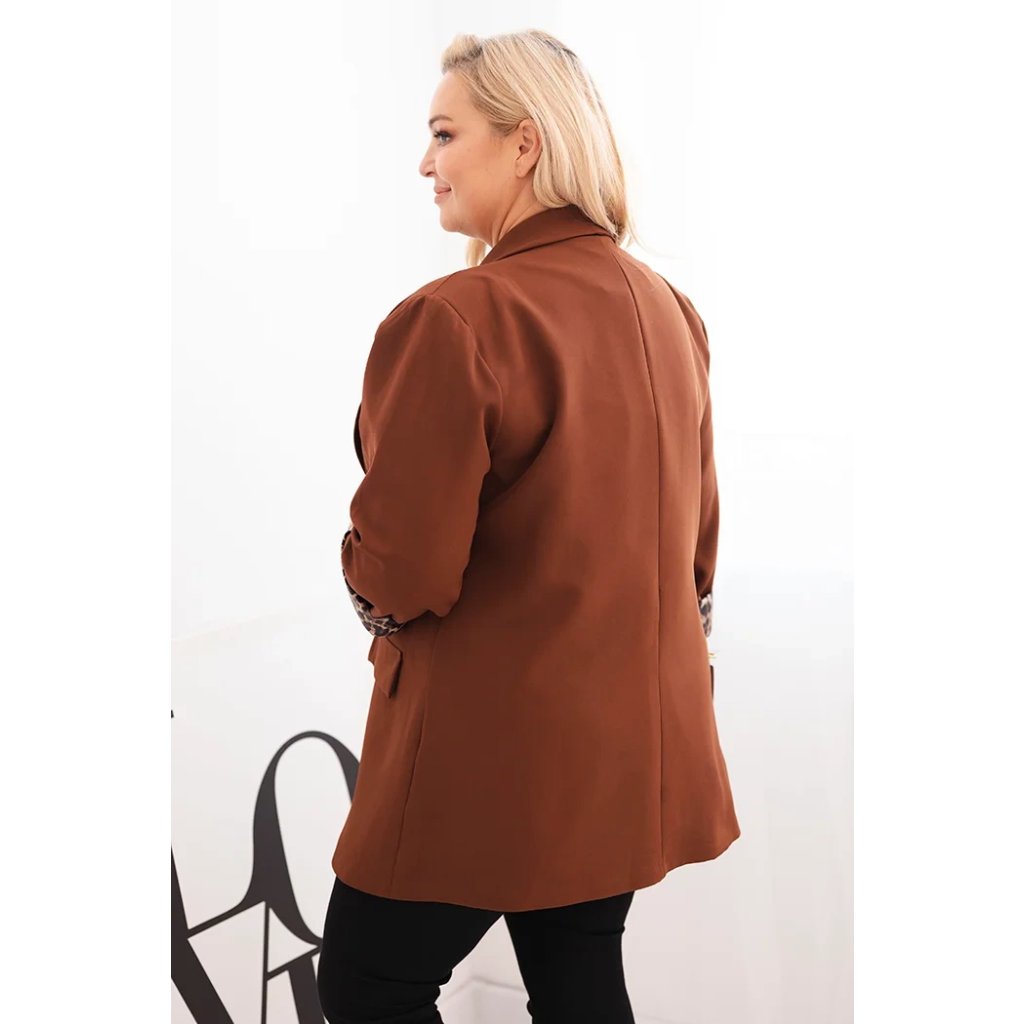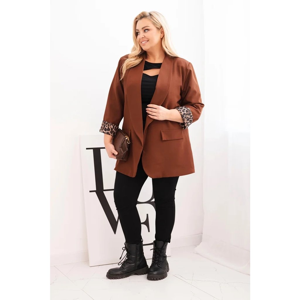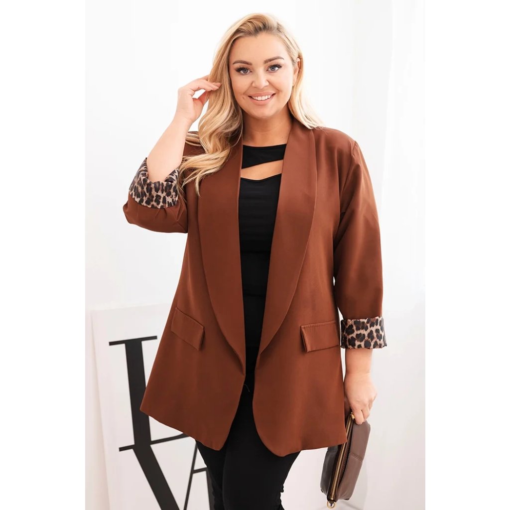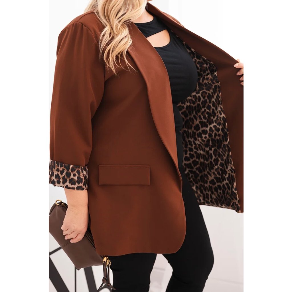 Dámská Plus Size sako s podšívkou v leopardím vzoru čokoládově hnědé