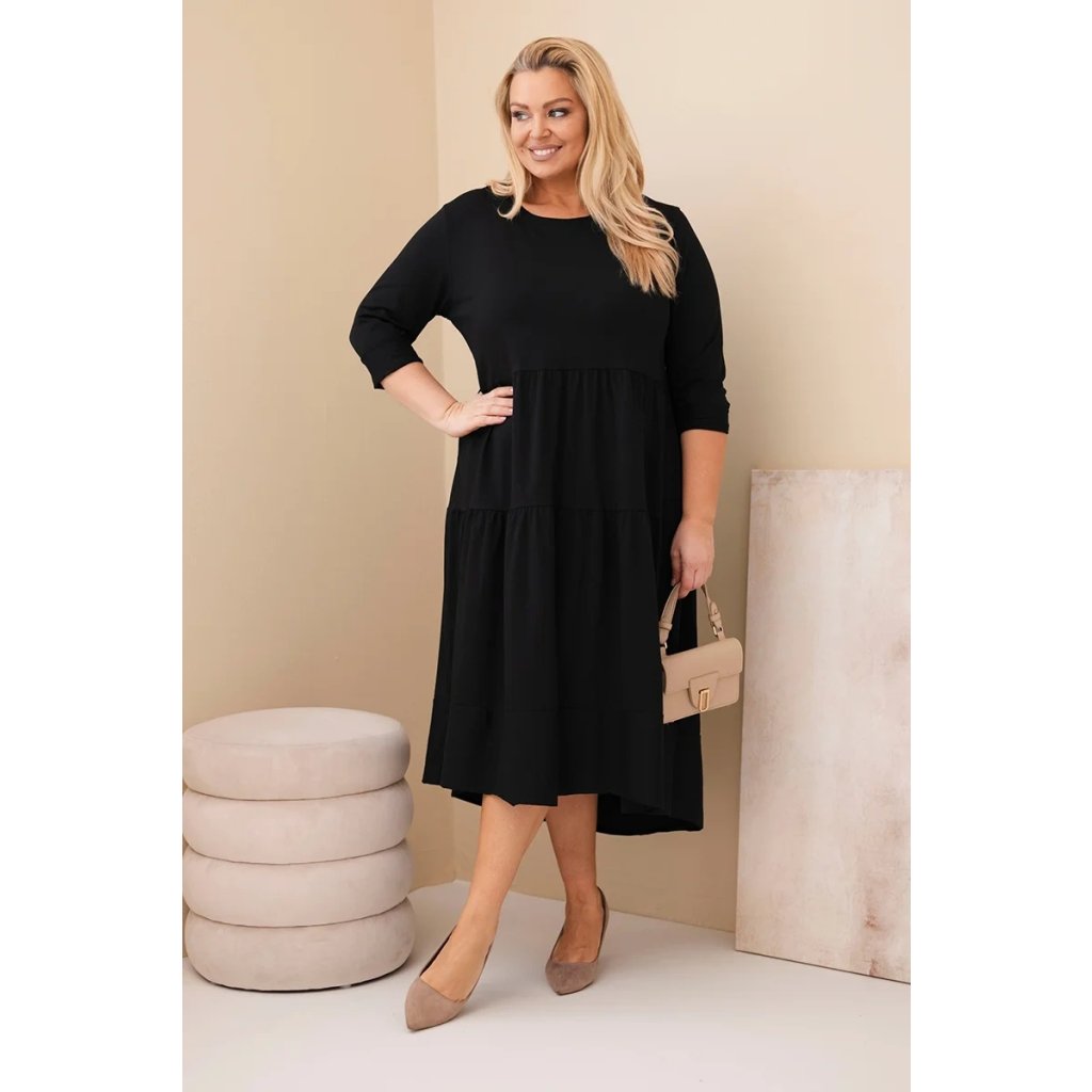 Dámské bavlněné Plus Size šaty s volánem černé