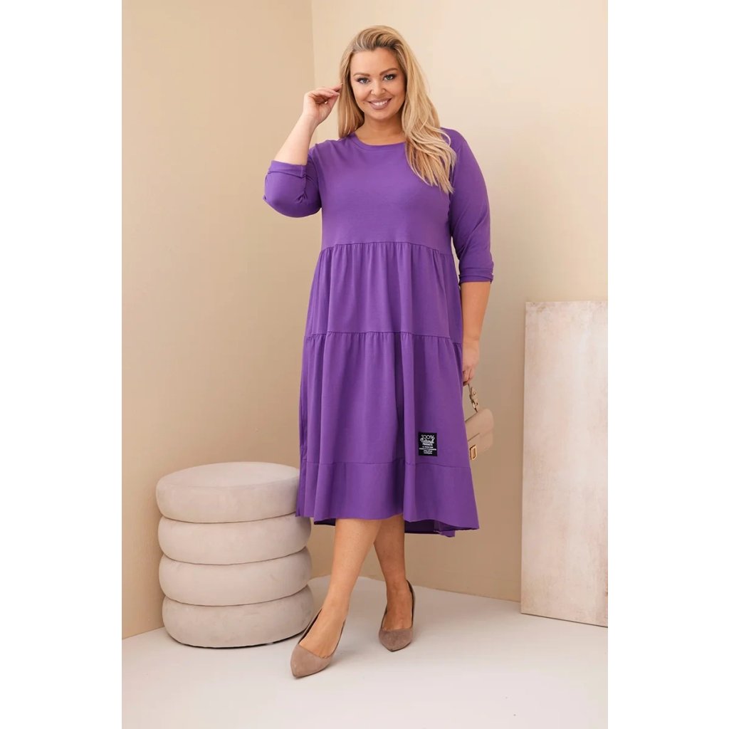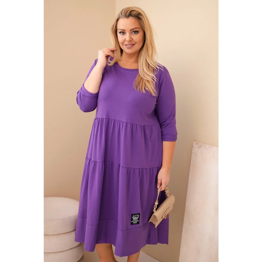 Dámské bavlněné Plus Size šaty s volánem fialové