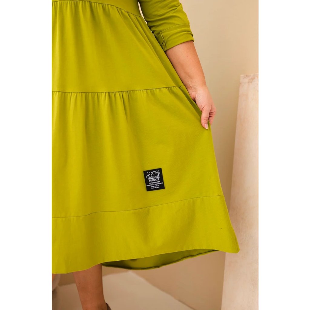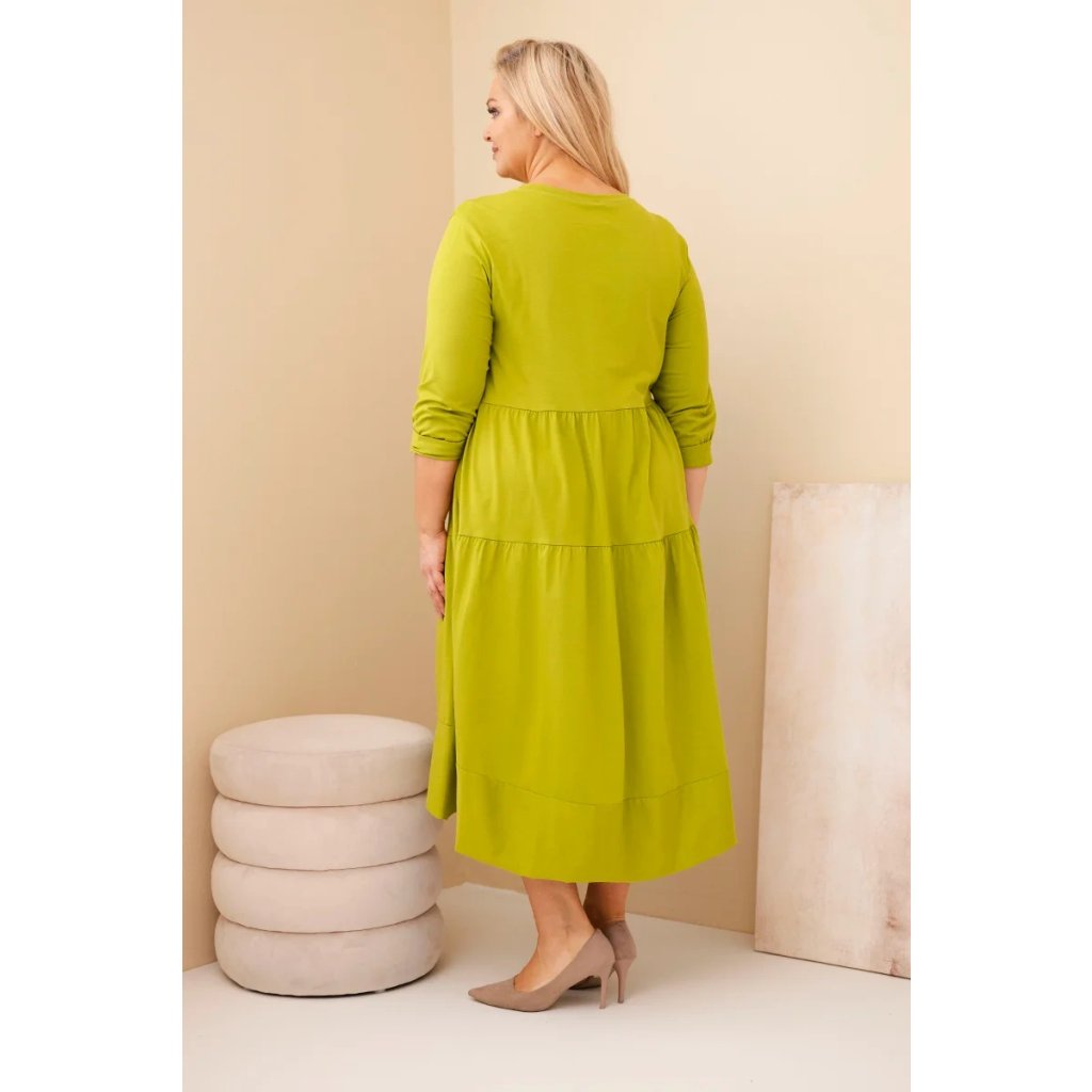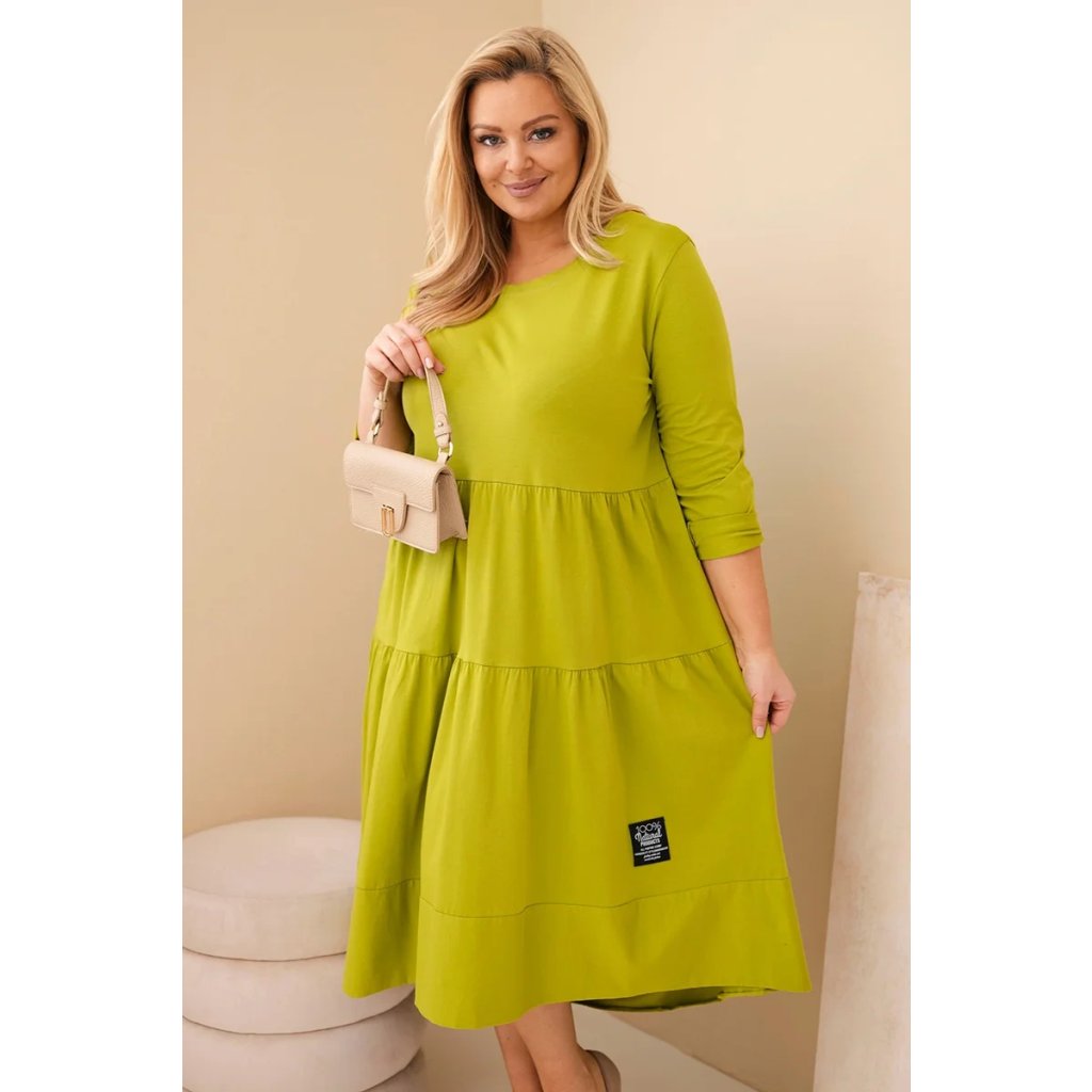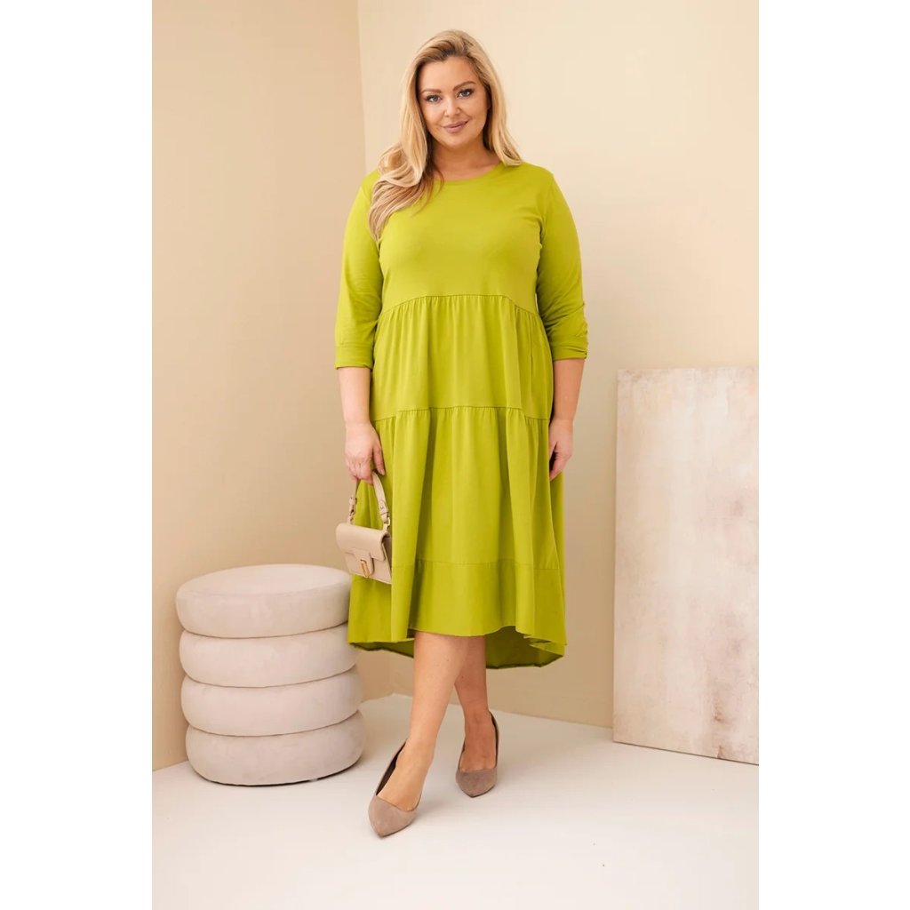 Dámské bavlněné Plus Size šaty s volánem pistáciové