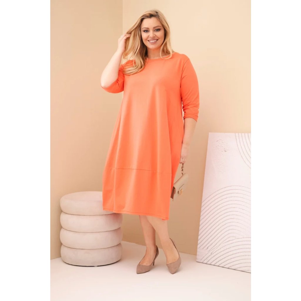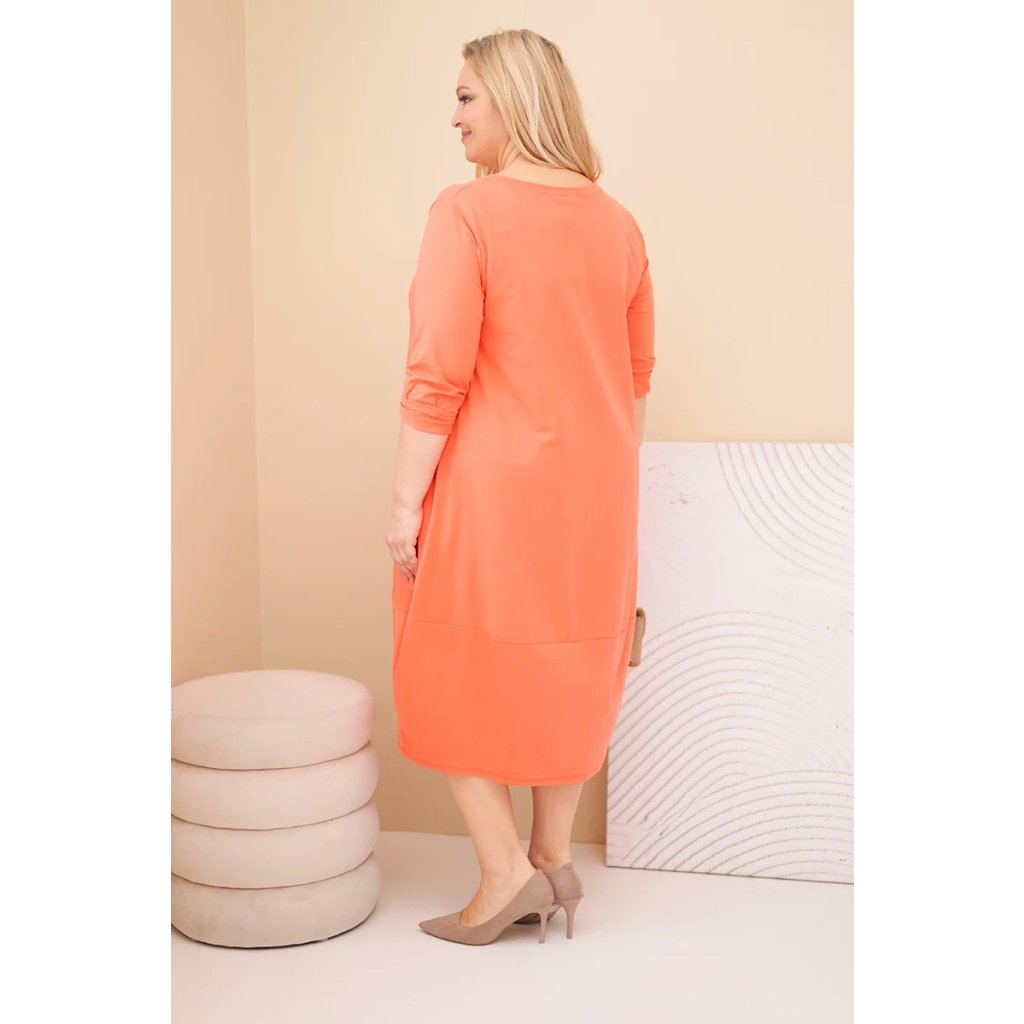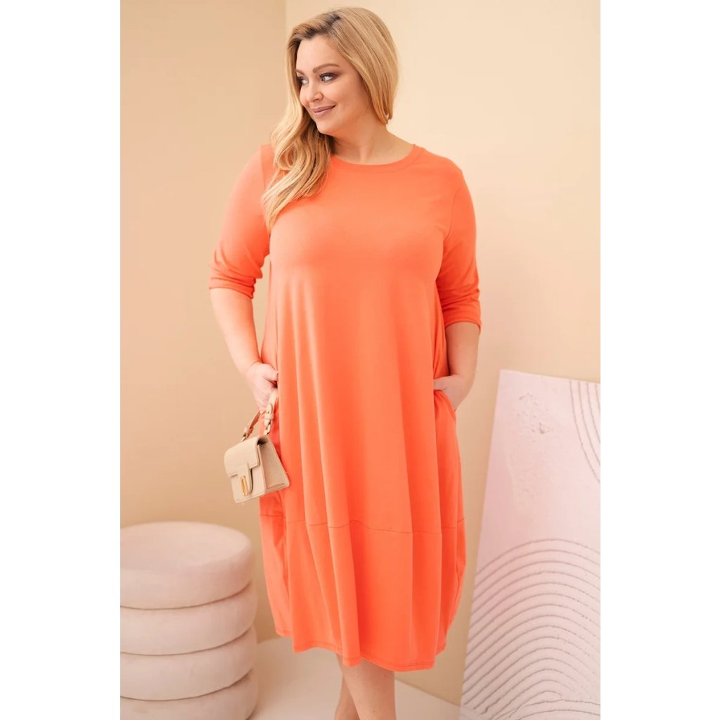 Dámské bavlněné Plussize šaty s kapsami meruňkové