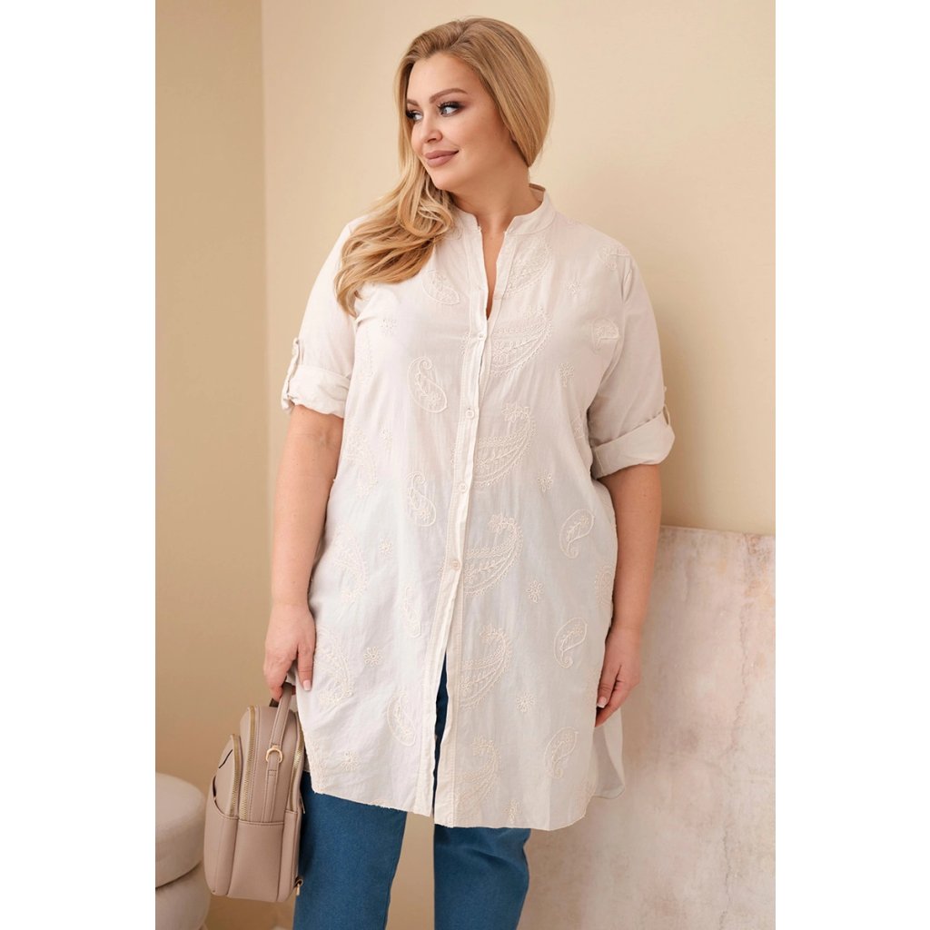 Dámské košilové Plus Size šaty s vyšíváním béžové