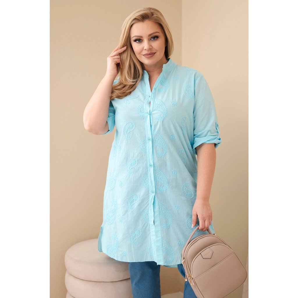 Dámské košilové Plus Size šaty s vyšíváním mint