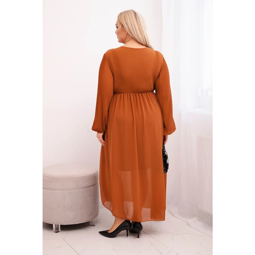 Dámské plisované Plus Size šaty z viskózy a s dlouhým rukávem camel