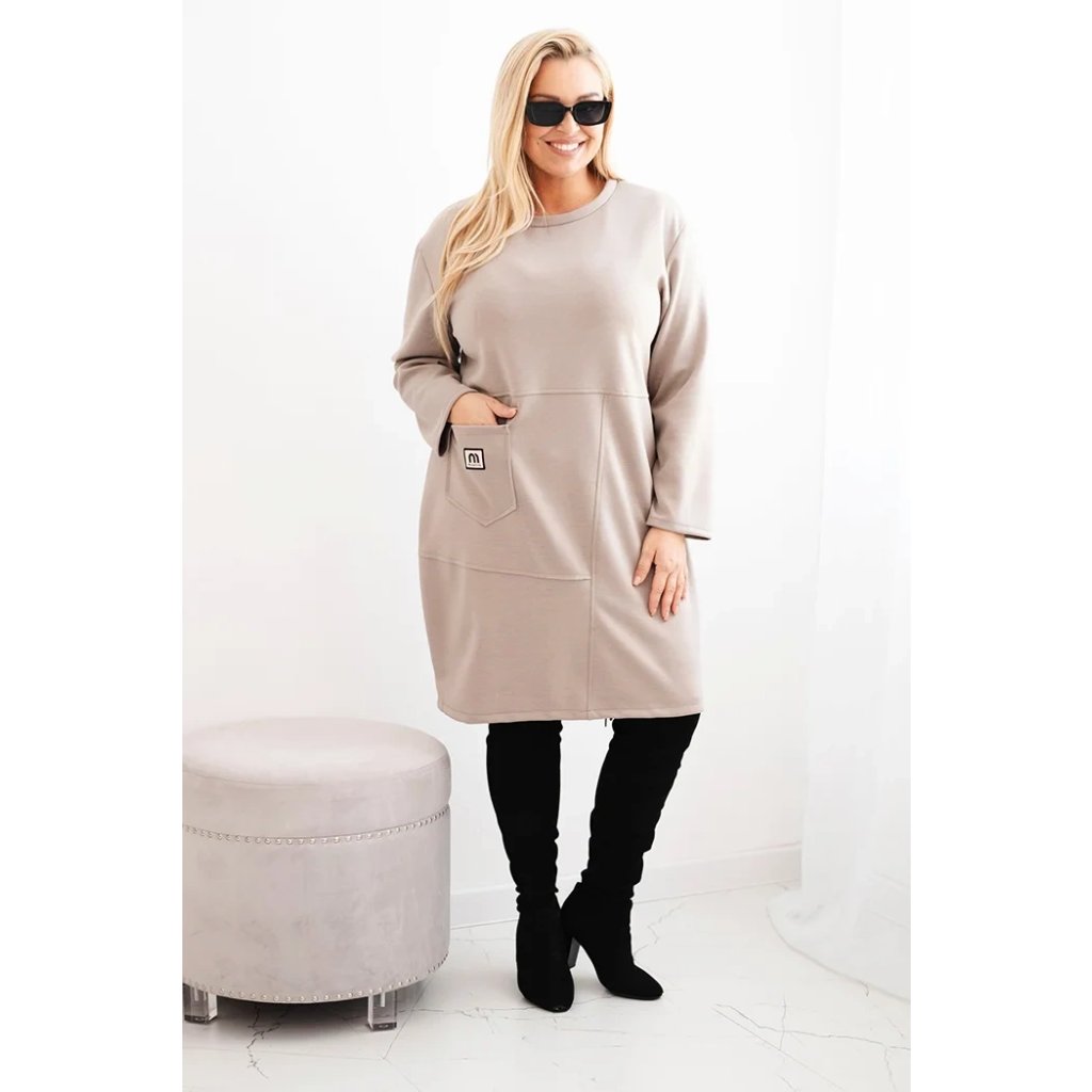 Dámské šaty Plussize s kapsou a 3/4 rukávem fango