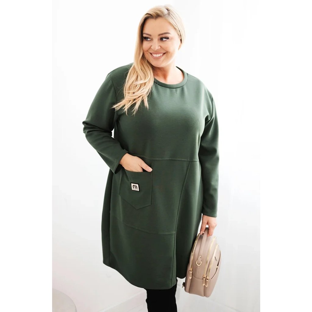 Dámské šaty Plussize máslo s kapsou a 3/4 rukávem khaki