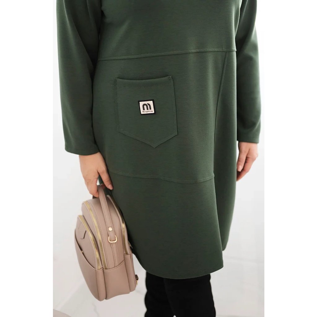 Dámské šaty Plussize máslo s kapsou a 3/4 rukávem khaki
