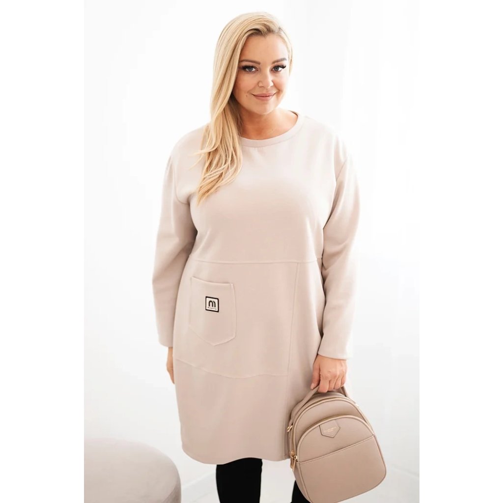 Dámské šaty Plussize máslo s kapsou a rukávem 3/4 béžové