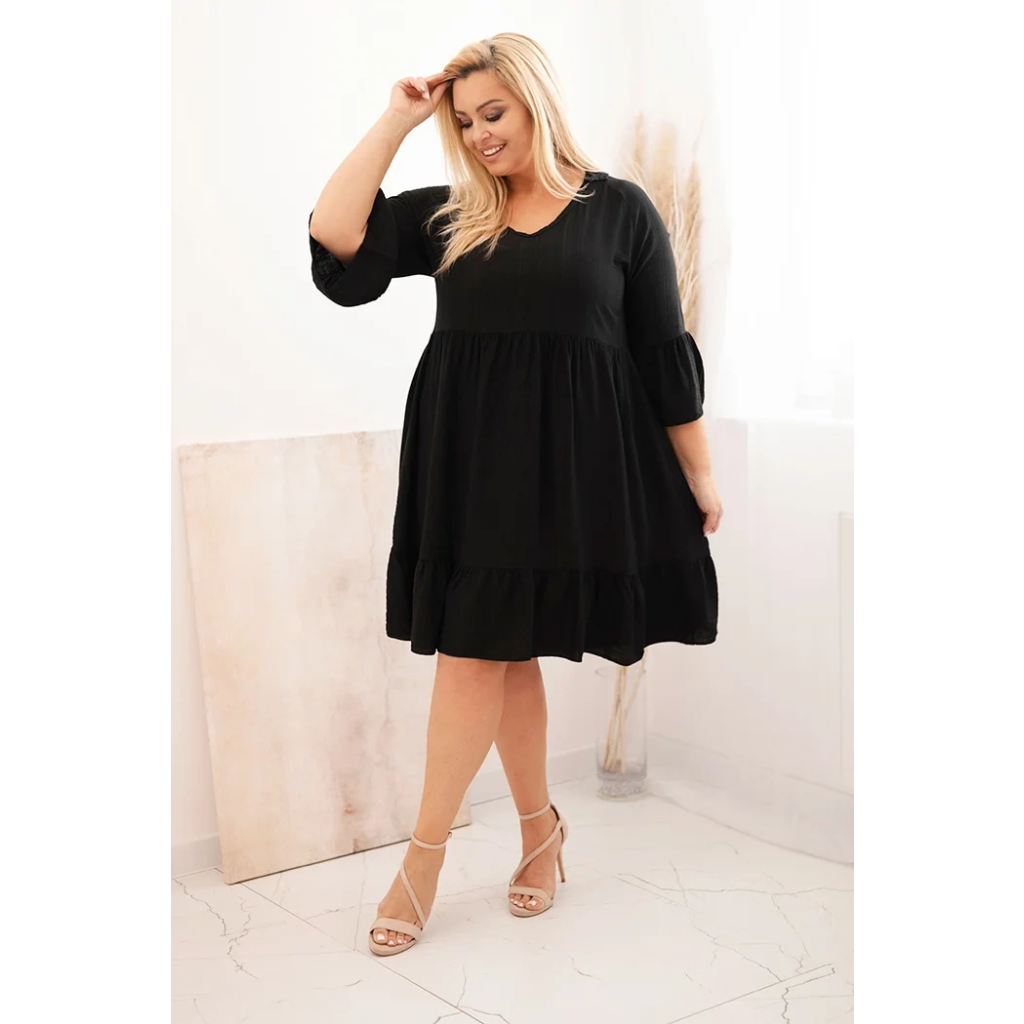 Pokud hledáte šaty, které spojují ženský styl s pohodlným nošením, tato varianta bude trefou do černého! Dámské šaty s volány a ozdobnými krajkovými zády jsou skvělou volbou jak pro každodenní nošení, tak i pro výjimečnější příležitosti. Jejich volný, pohodlný střih krásně padne na postavu a zajišťuje maximální komfort a vzdušnost. Rukáv 3/4 zakončený volánem dodává lehkost a spodní část s volánem vytváří jemný, romantický efekt. Vyrobené ze 100% viskózy, šaty jsou měkké, příjemné na dotek a ideální na teplejší dny. Krajkový detail na zádech dodává celku moderní a originální charakter. Skvělá volba do práce, na procházku nebo setkání s přáteli.