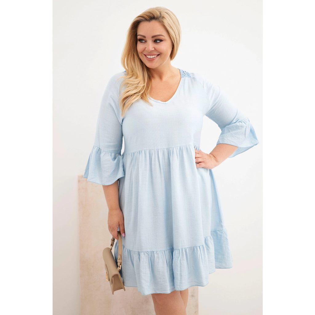 Pokud hledáte šaty, které spojují ženský styl s pohodlným nošením, tato varianta bude trefou do černého! Dámské šaty s volány a ozdobnými krajkovými zády jsou skvělou volbou jak pro každodenní nošení, tak i pro výjimečnější příležitosti. Jejich volný, pohodlný střih krásně padne na postavu a zajišťuje maximální komfort a vzdušnost. Rukáv 3/4 zakončený volánem dodává lehkost a spodní část s volánem vytváří jemný, romantický efekt. Vyrobené ze 100% viskózy, šaty jsou měkké, příjemné na dotek a ideální na teplejší dny. Krajkový detail na zádech dodává celku moderní a originální charakter. Skvělá volba do práce, na procházku nebo setkání s přáteli.