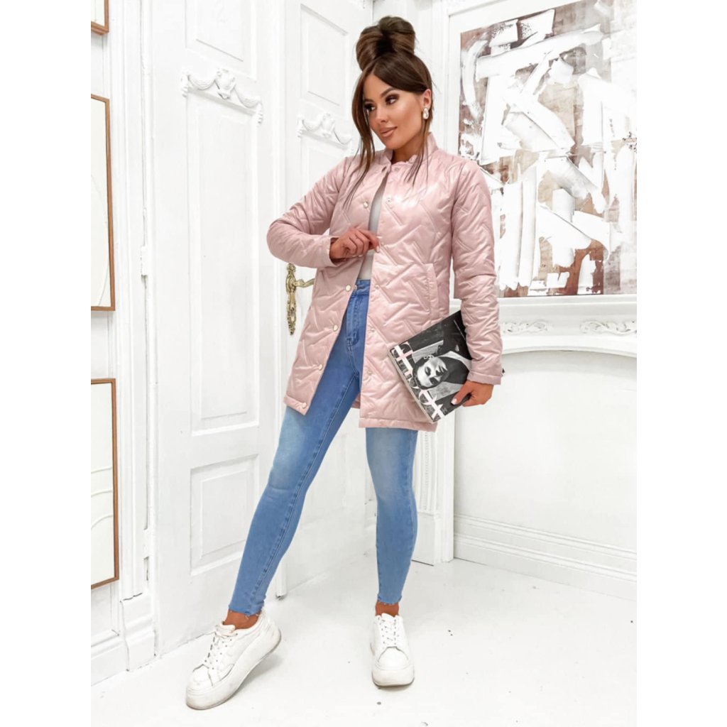 Dlouhá bunda bez límečku růžová delší prošívaná bez límečku, zlaté patentky, S–3XL (7 barev)