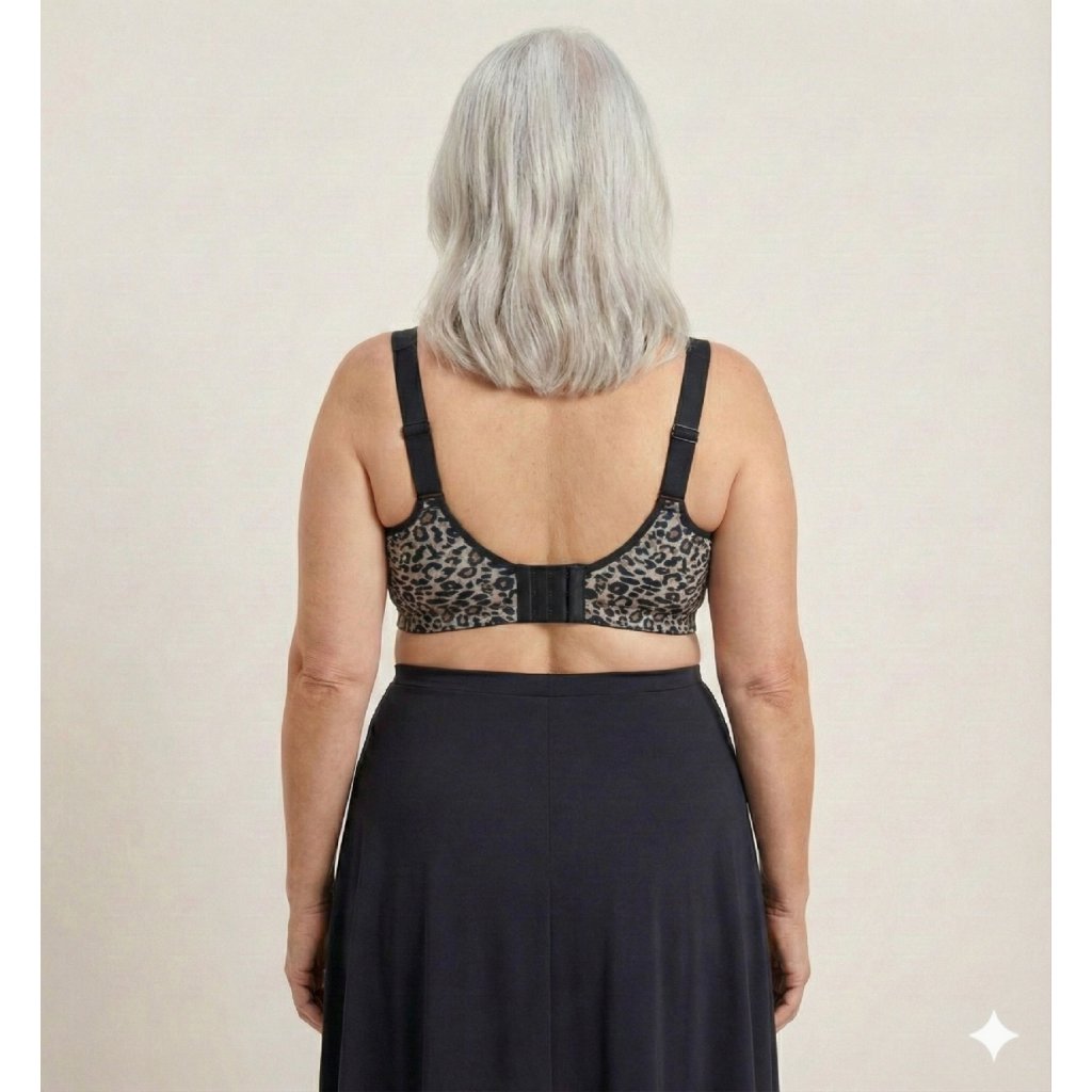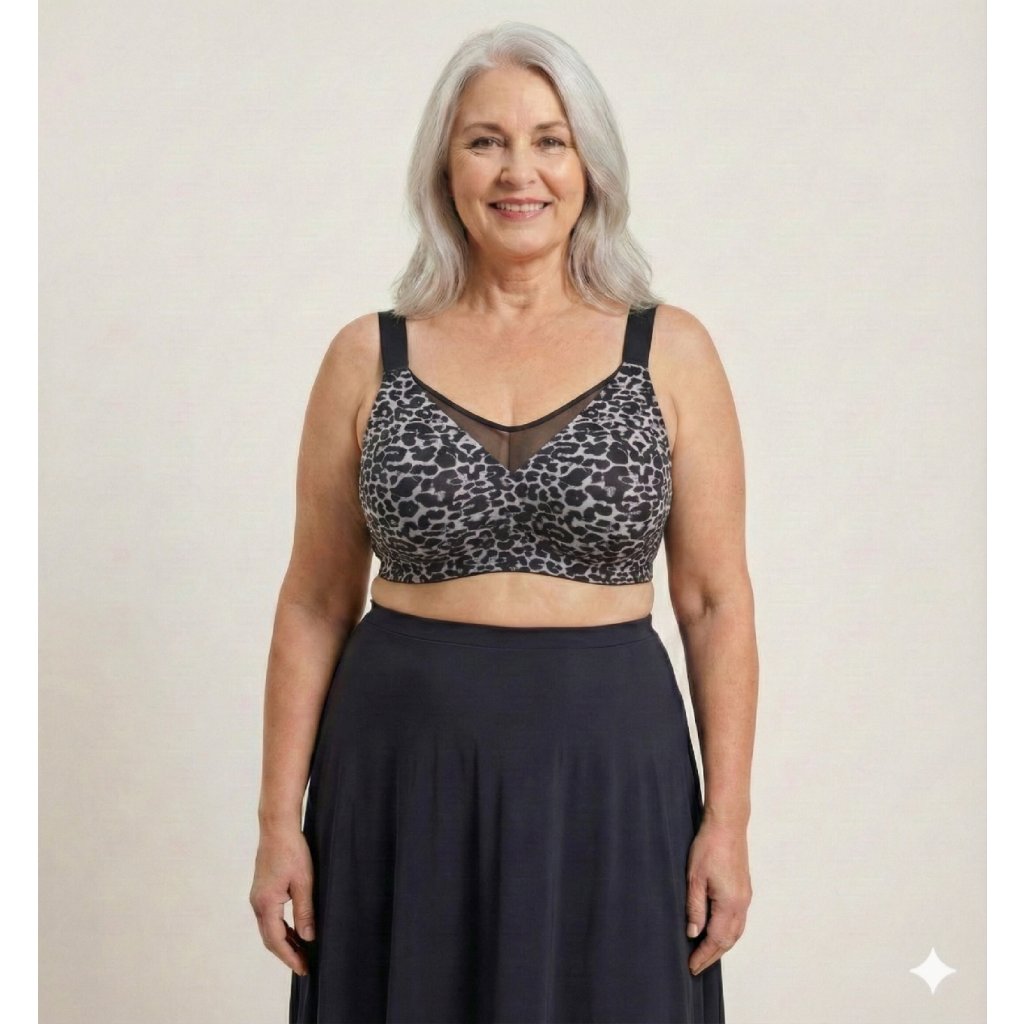 Dámská bezešvá podprsenka je navržena pro maximální komfort a přirozený vzhled. Díky všité kostici bez kovu poskytuje pevnou, ale příjemnou oporu bez nepříjemného tlaku. Jemná síťka ve výstřihu vytváří decentní push-up efekt, zatímco široká ramínka a zadní pás eliminují otlaky, špíčky a bolest zad. Podprsenka je vyztužená, nevycpaná, s možností vyjímatelné výztuže pro krásný a kulatý tvar poprsí. Praktický střih se hodí pro každodenní nošení i delší noční komfort. Dostupná ve velikostech L–5XL.