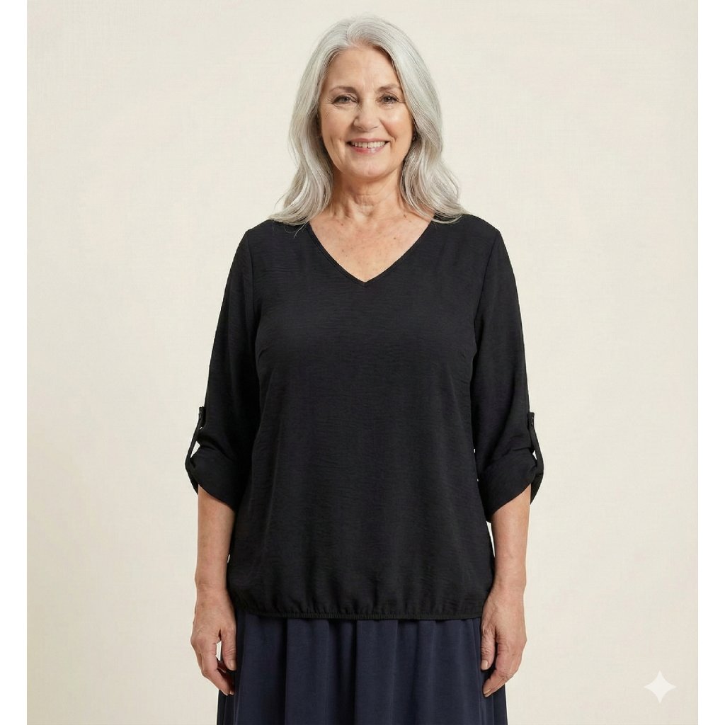 Elegantní tunika Nogar s volnějším střihem pro plnější postavu. Lehký 100% polyester, prsa cca 130 cm, délka 72 cm, uni velikost vhodná na L–4XL. Spodní okraj s pružnou gumičkou hezky sedí přes boky. Tunika je dostupná v několika moderních barvách a skvěle se hodí k džínám i úzkým kalhotám.