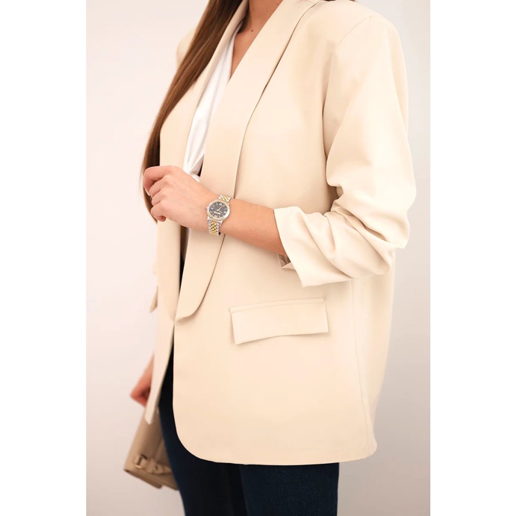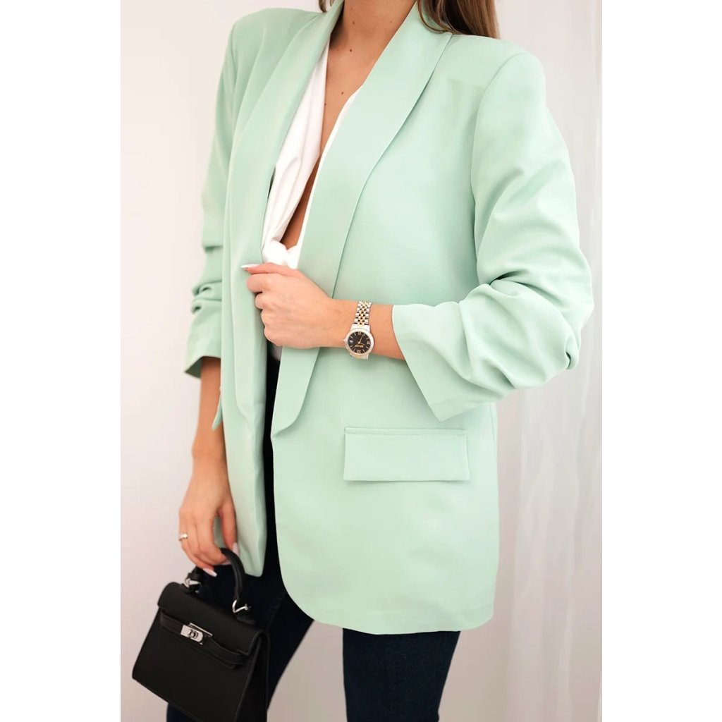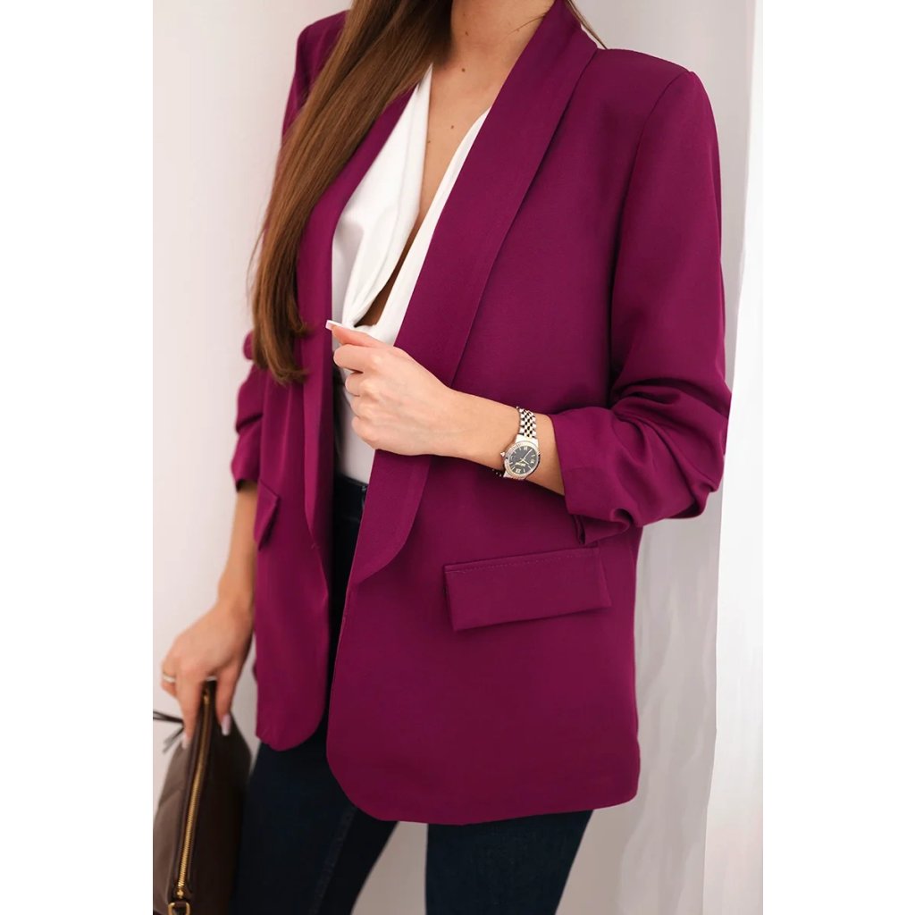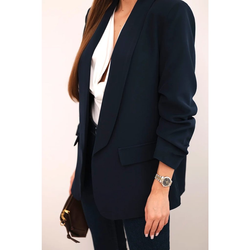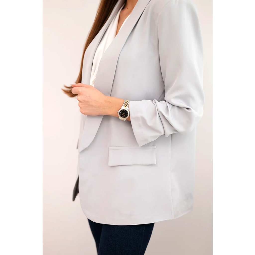 Představujeme vám elegantní sako. Sako bez zapínání s klopami vpředu. Tento model bude skvělou volbou pro mnoho typů postav, dodávající každému outfitu nenucenou eleganci. Je to základ každého šatníku a prvek stylizace pro speciální příležitosti - na každé roční období a na každou příležitost. Sako je vyrobeno z vysoce kvalitního materiálu. Sako má podšívku. Velikost je univerzální a bude vhodná pro dámy ve velikosti S, M a L.