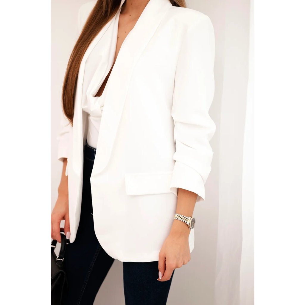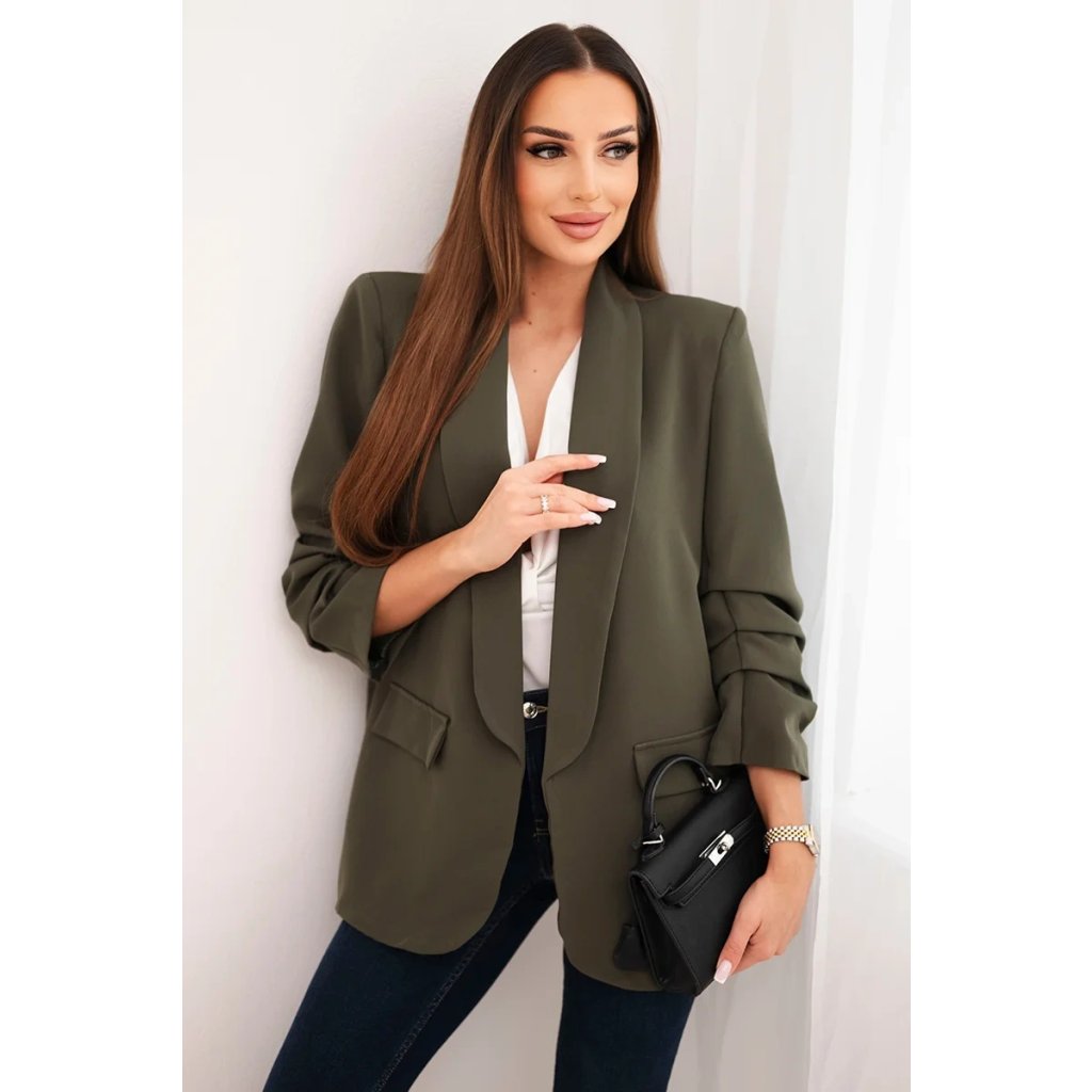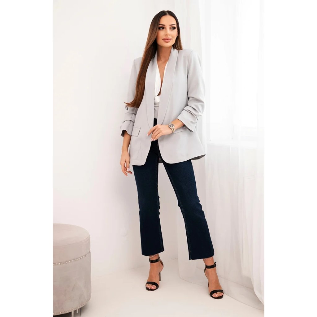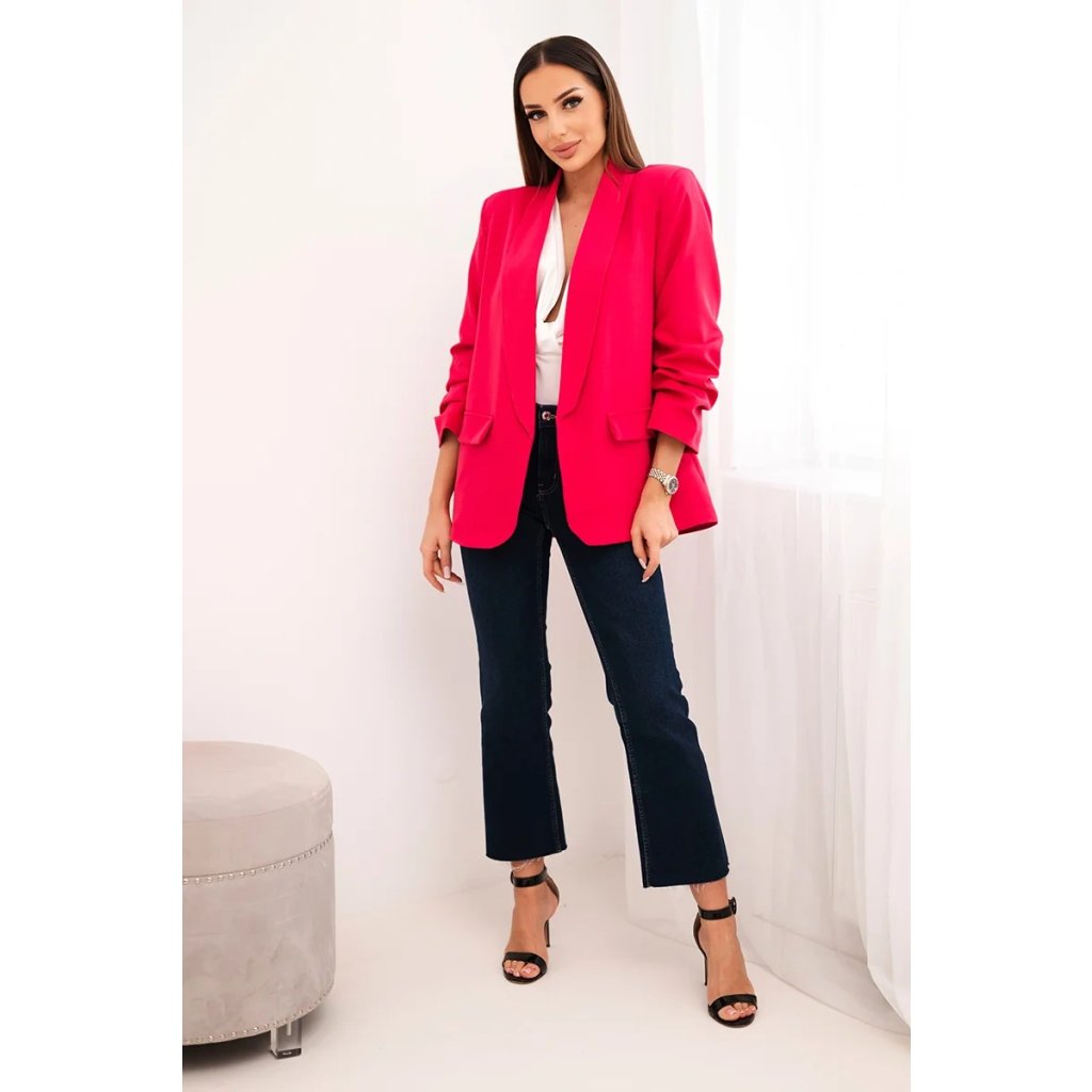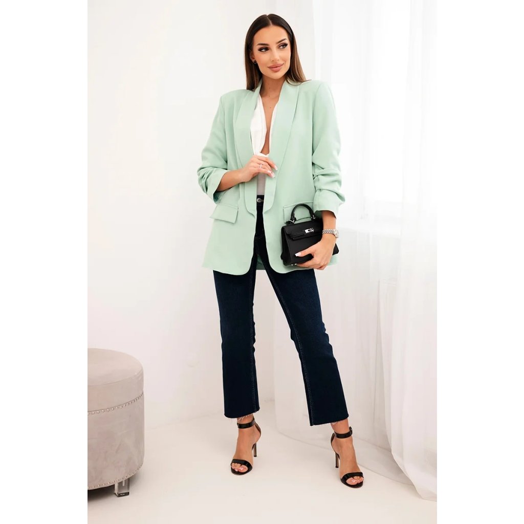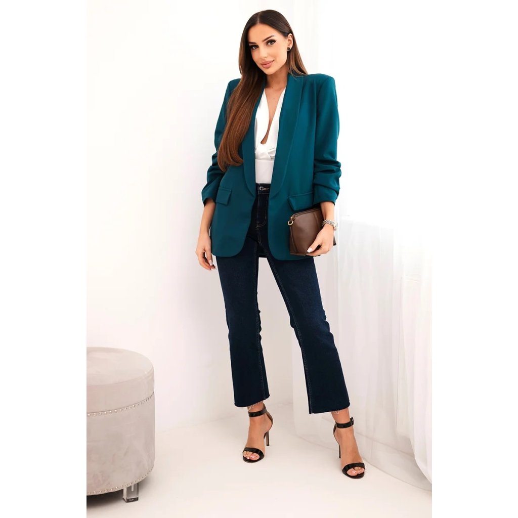 Představujeme vám elegantní sako. Sako bez zapínání s klopami vpředu. Tento model bude skvělou volbou pro mnoho typů postav, dodávající každému outfitu nenucenou eleganci. Je to základ každého šatníku a prvek stylizace pro speciální příležitosti - na každé roční období a na každou příležitost. Sako je vyrobeno z vysoce kvalitního materiálu. Sako má podšívku. Velikost je univerzální a bude vhodná pro dámy ve velikosti S, M a L.