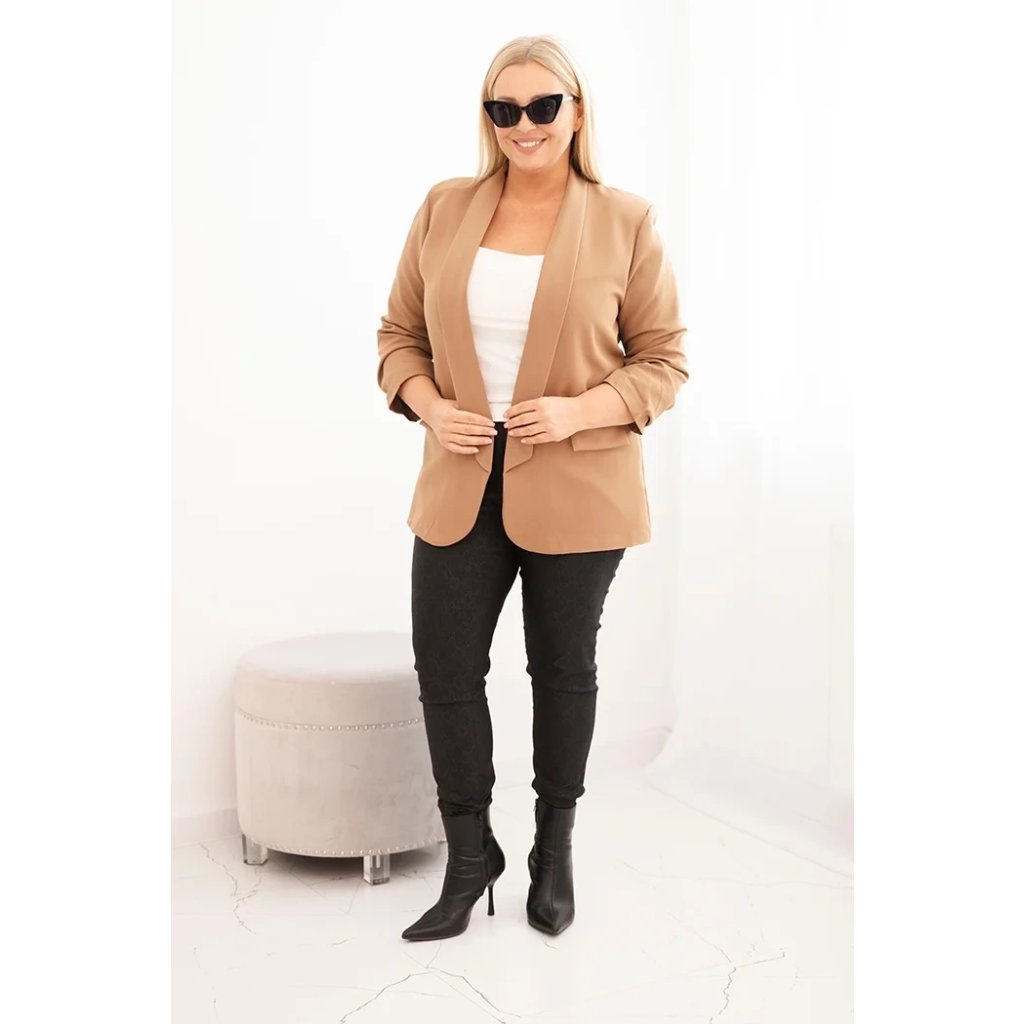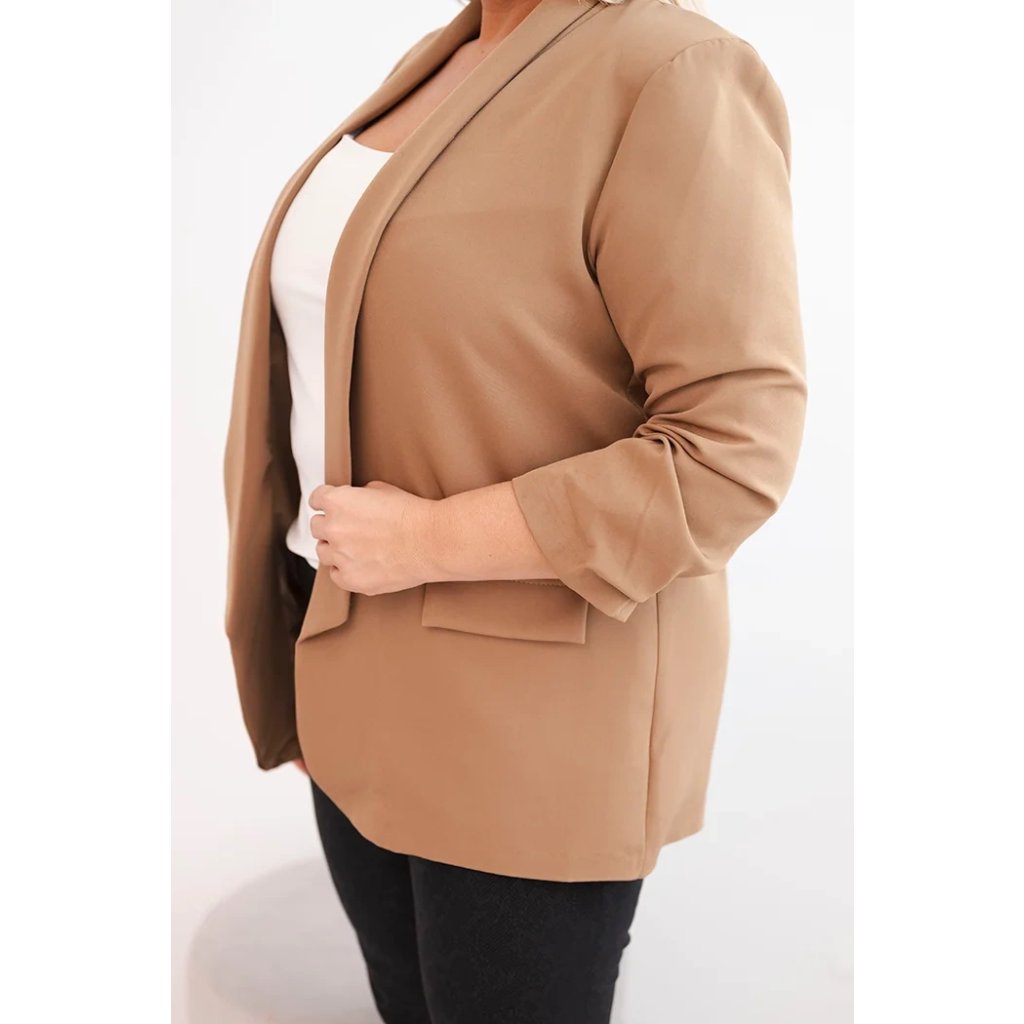 Elegantní dámská sako plus size je vynikající volbou pro ženy, které oceňují klasiku, pohodlí a styl. Model bez zapínání s jednoduchým střihem skvěle sedí na postavě, zakrývá nedostatky a zvýrazňuje ženské tvary. Jemná podšívka zajišťuje komfort nošení a délka zakrývající boky způsobuje, že sako vypadá velmi výhodně.