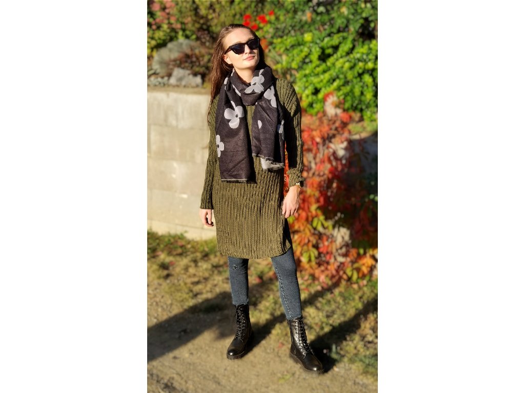Dámská šála s květinami černá