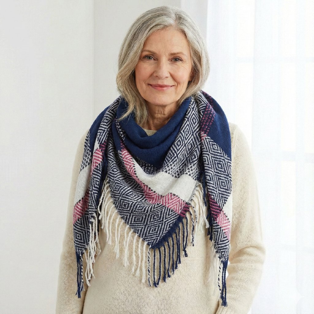 Decentní vzor a barvy černá nebo tmavě modrá se dobře kombinují s kabáty, bundami i svetrem a sluší ženám všech věkových kategorií. Dlouhé třásně dodávají šátku lehce hravý, ale stále elegantní vzhled, takže se hodí jak na běžné nošení, tak do práce nebo na procházku městem. Tento univerzální kousek by rozhodně neměl chybět v zimním šatníku.
