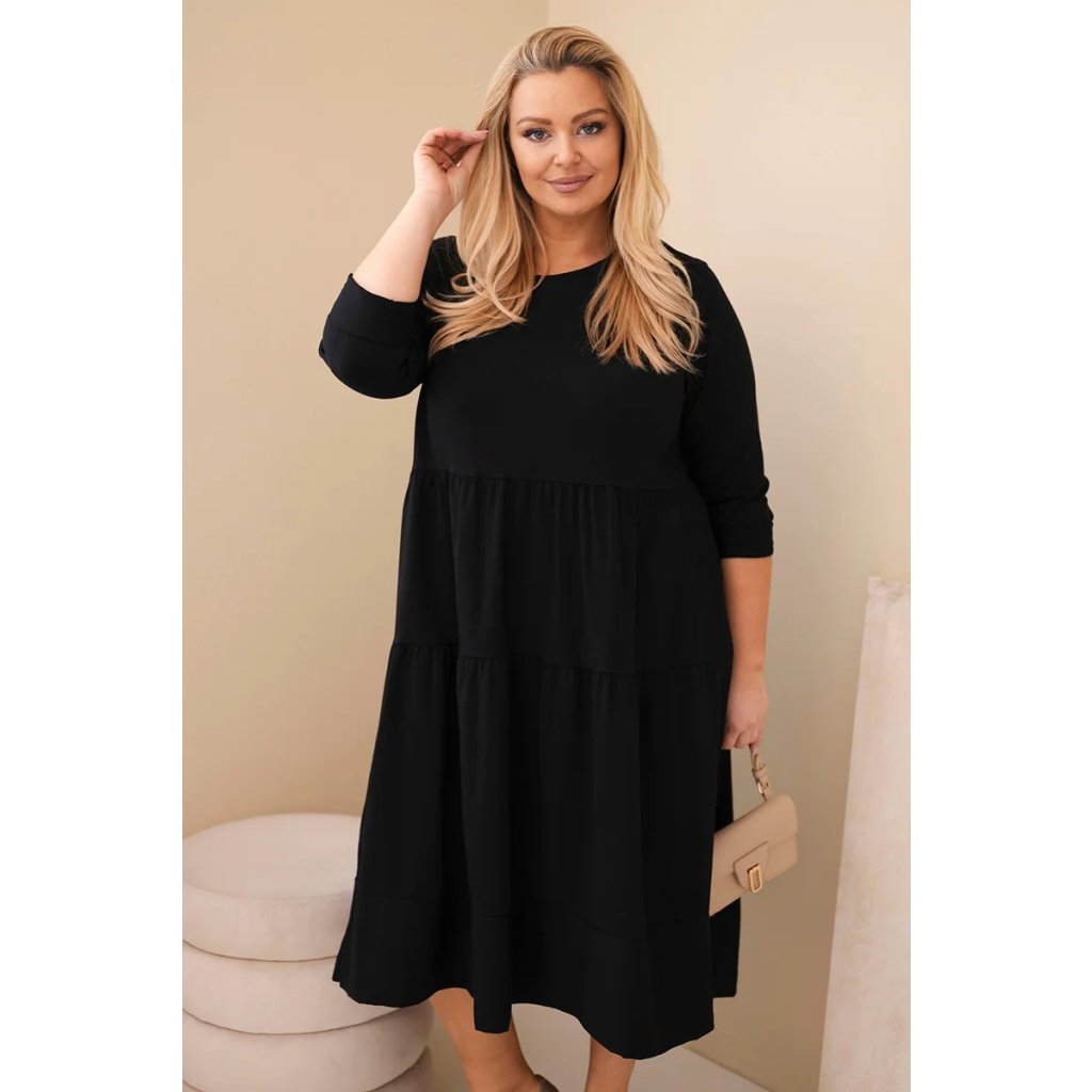 Dámské bavlněné Plus Size šaty s volánem černé