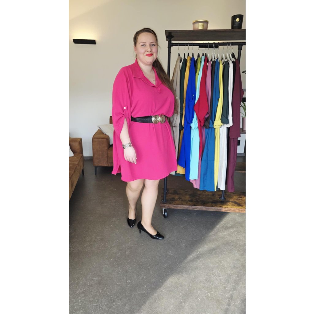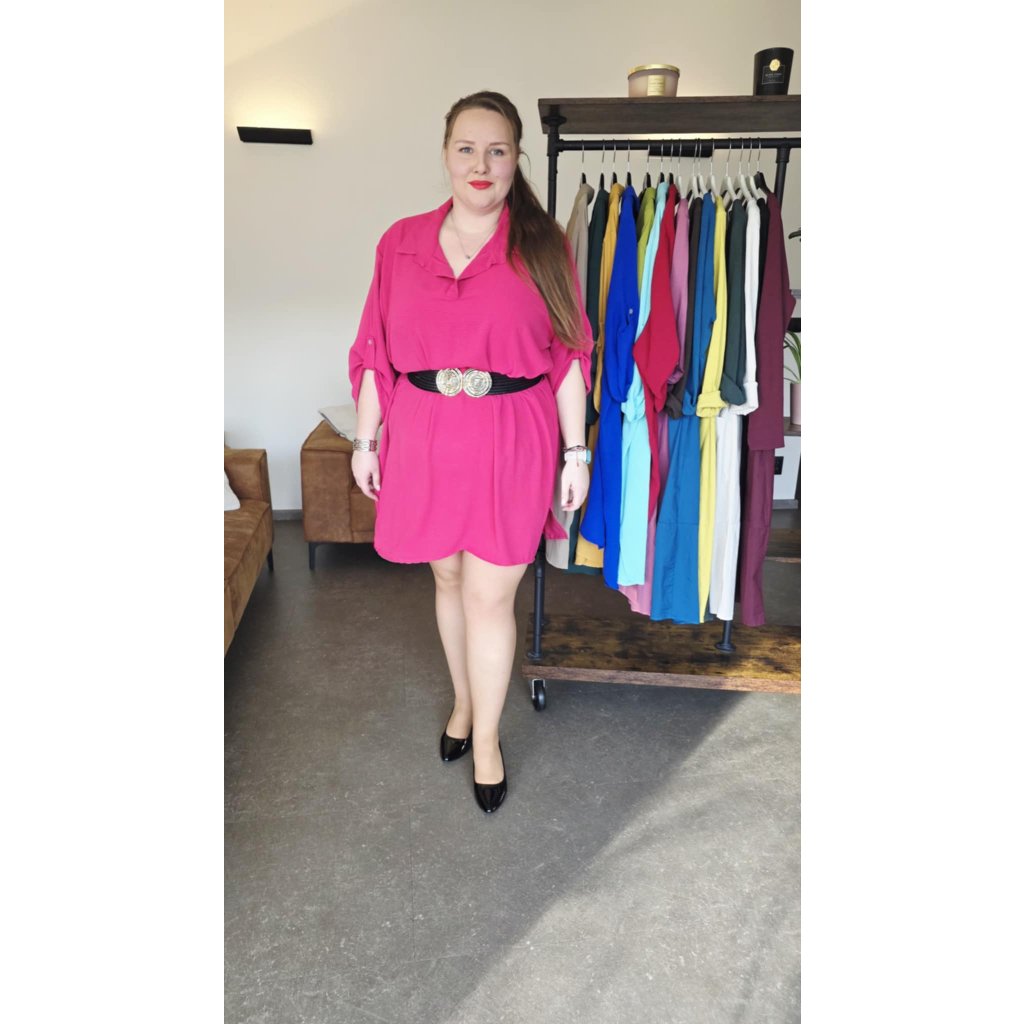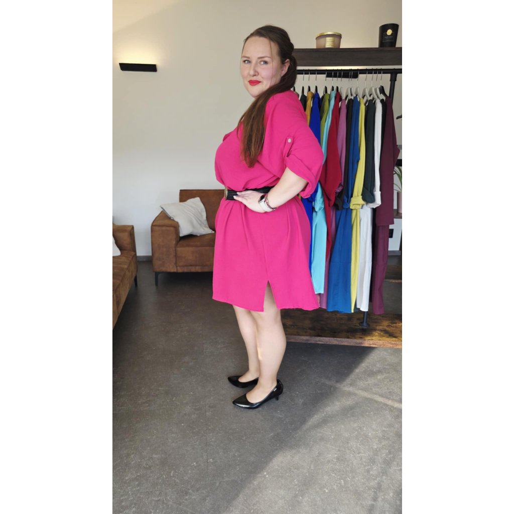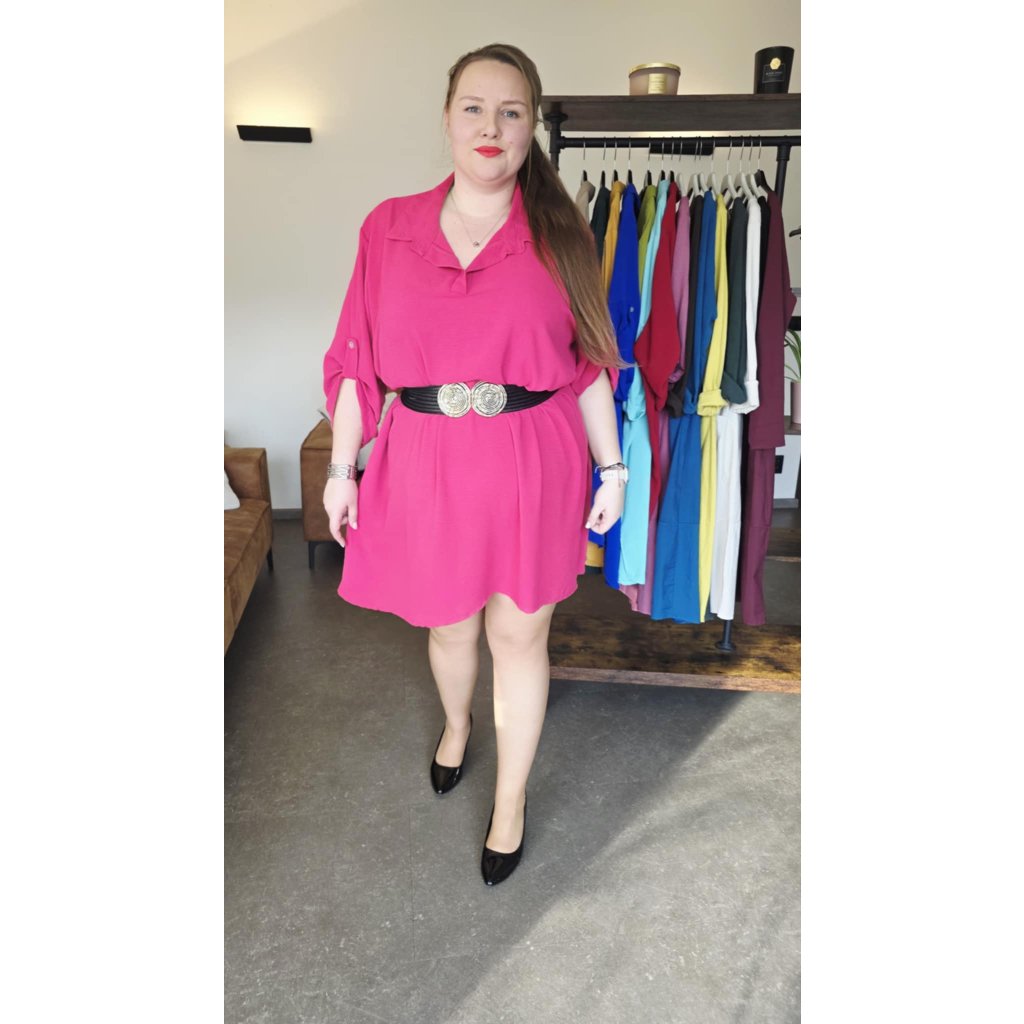 Košilové šaty MAIA fuchsiově růžové košilový střih, prodloužený zadní díl, rukávy na knoflíček, 5XL
