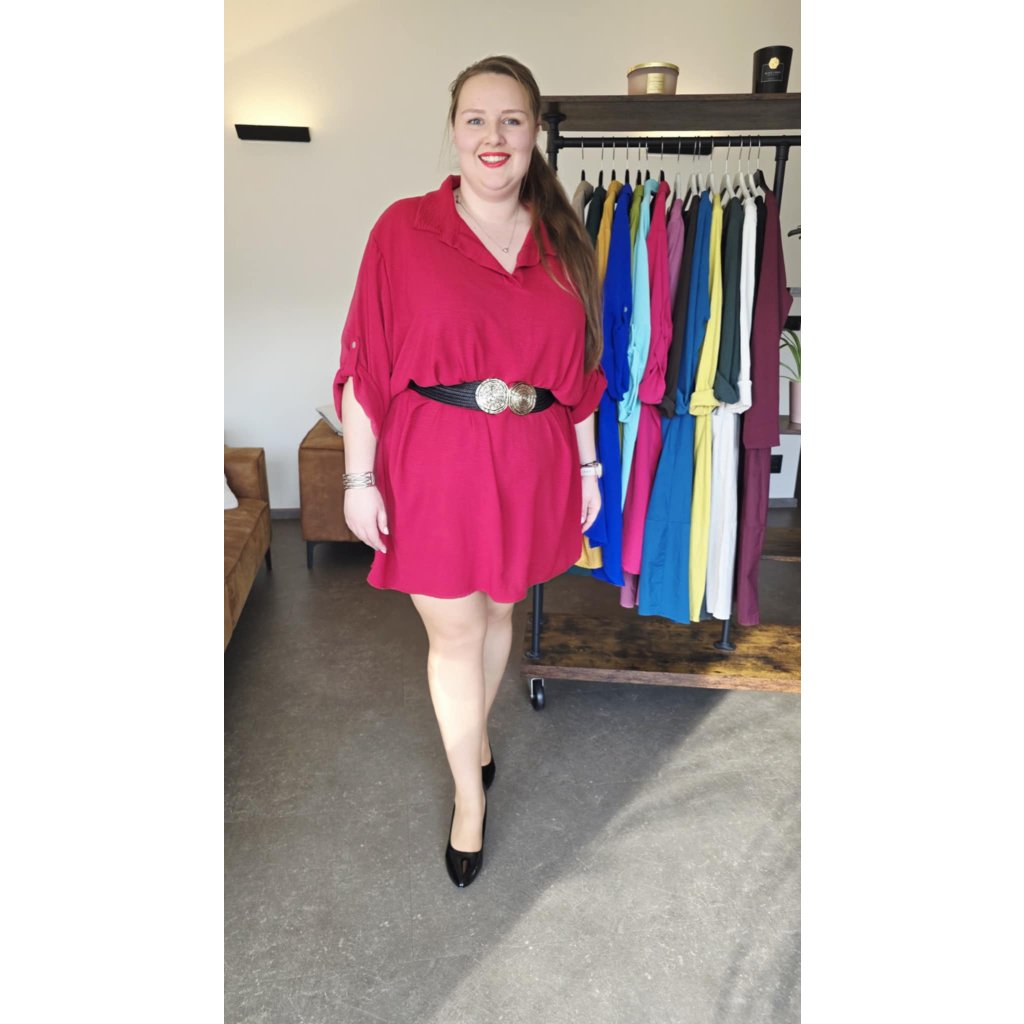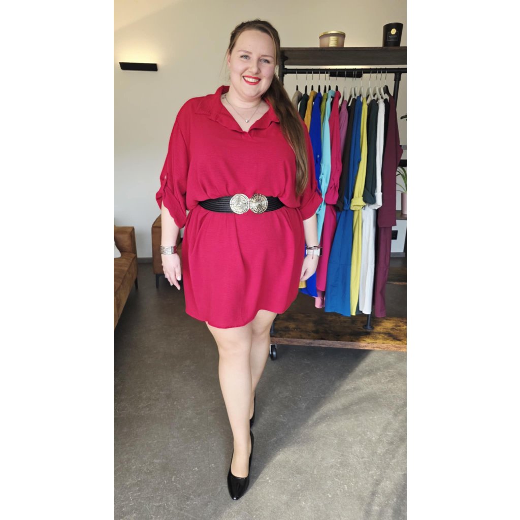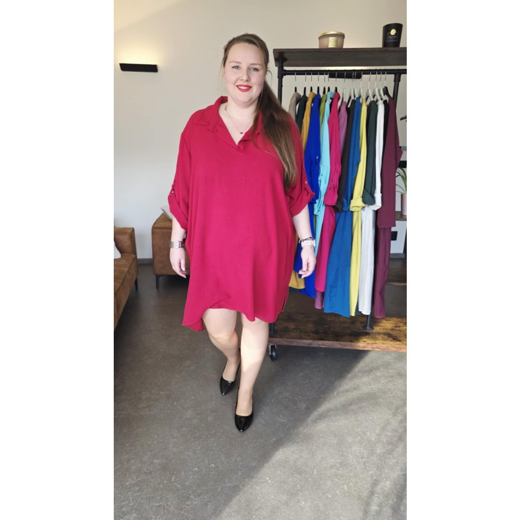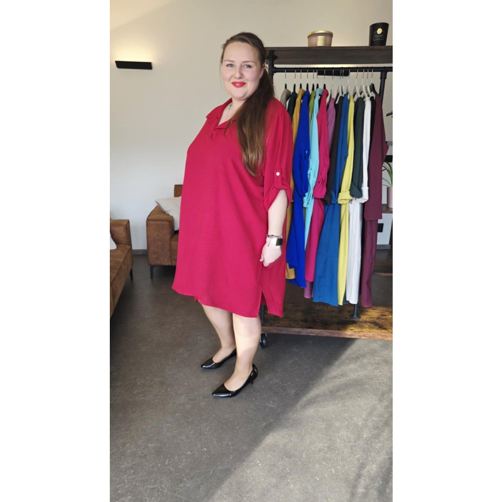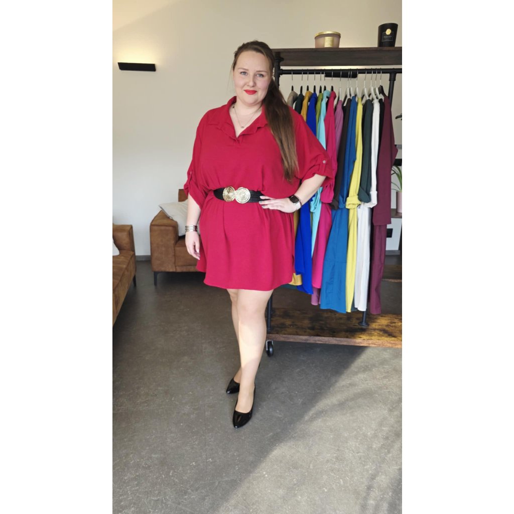 Košilové šaty MAIA tmavě červené košilový střih, prodloužený zadní díl, rukávy na knoflíček, 5XL