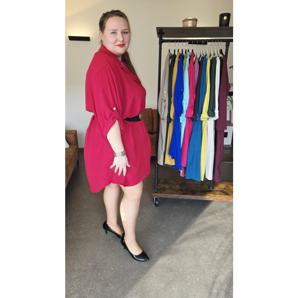 Velkým benefitem jsou rukávy – můžete je nosit delší, nebo je jednoduše zkrátit a zafixovat pomocí knoflíčku. Šaty snadno využijete i jako prodlouženou košili přes legíny či džíny. Pásek není součástí, ale můžete je nosit volně nebo je doplnit vlastním páskem dle stylu. K dispozici je 8 barev.