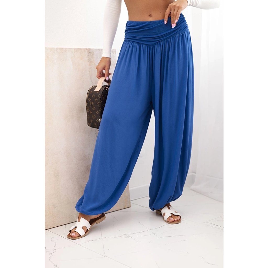 - Detaily: jemné řasení, zakončení nohavic s gumičkou