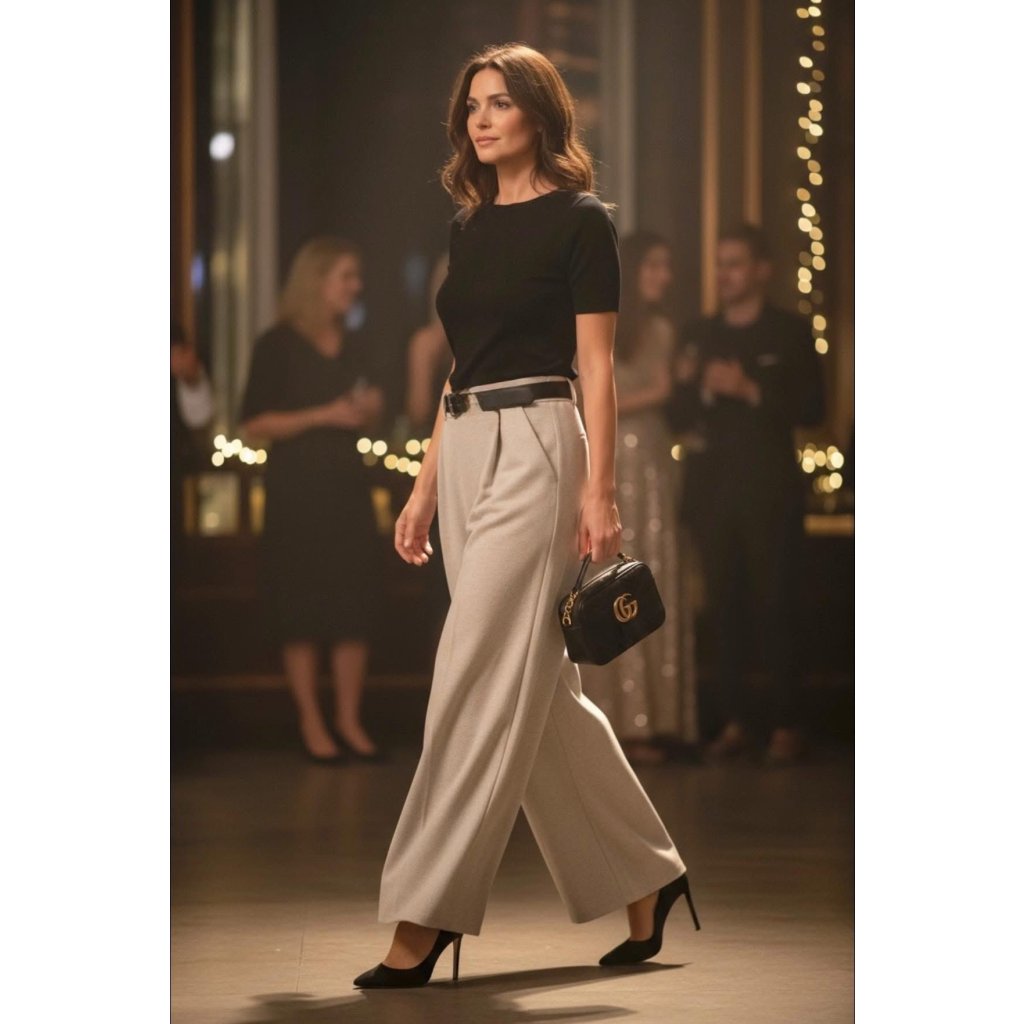 Tyto teplé široké kalhoty s páskem jsou ideální pro chladnější dny, kdy chcete spojit pohodlí, eleganci a zakrytí problematických partií. Díky širší nohavici kalhoty volně splývají přes stehna i lýtka, nic se nezařezává a postava působí opticky štíhlejší a vyšší. Skvěle se hodí i pro ženy 50+, které ocení volnost pohybu a nadčasový, decentní vzhled.