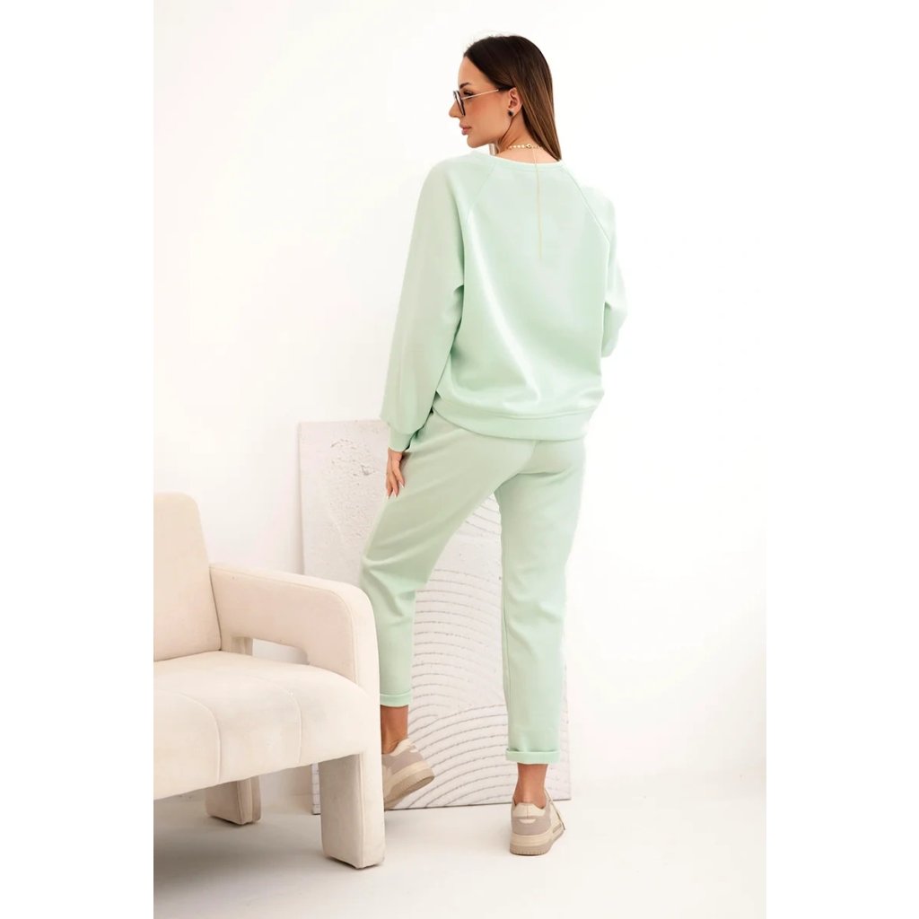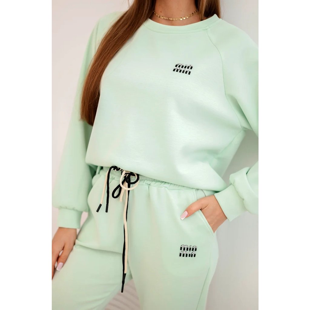 Máslová souprava z viskózy s mikinou a kalhotami mint