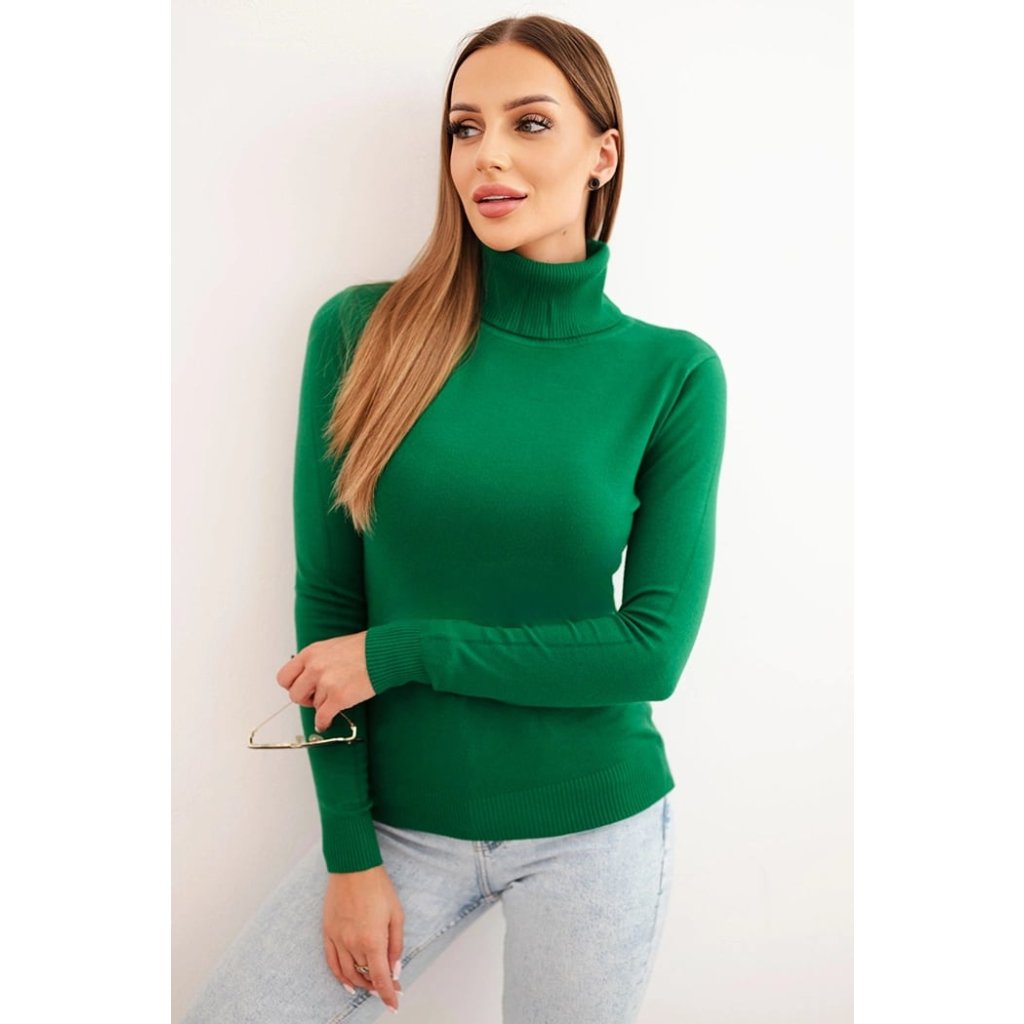 Dámský svetr z viskózy s rolákem a dlouhým rukávem zelený