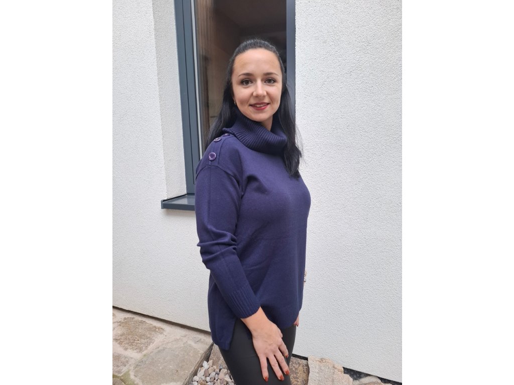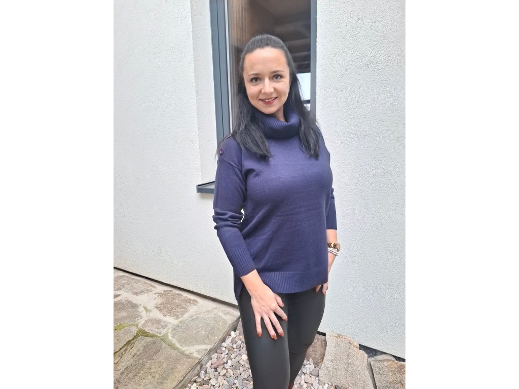 Stylový dámský svetr s rolákem je perfektním kouskem pro chladnější dny. Díky příjemnému materiálu (50% viskóza, 28% polyester, 22% modal) se skvěle nosí, je hebký na dotek a zároveň si dlouho zachová svůj tvar. Originální detail v podobě knoflíků na rameni dodává svetru elegantní nádech, který se hodí jak pro každodenní nošení, tak i pro ležérní elegantní outfit. Svetr má pohodlný střih s rozparky na bocích, který se krásně přizpůsobí postavě.