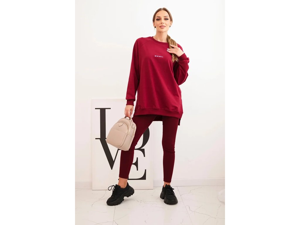 Dámská souprava bavlněná mikina a legíny s nápisem Minimal bordo