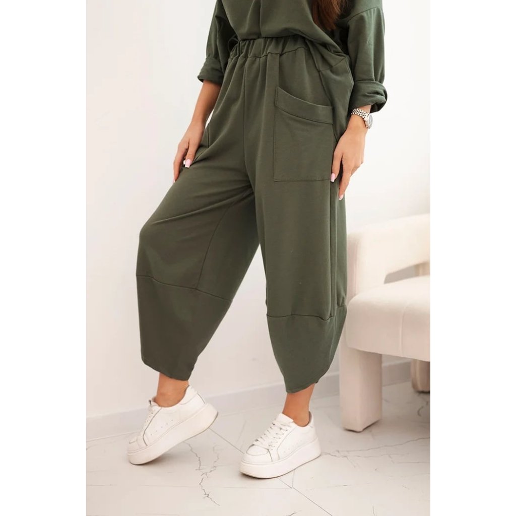 Kalhoty v 3/4 délce mají v pase gumu a praktické velké kapsy vpředu.