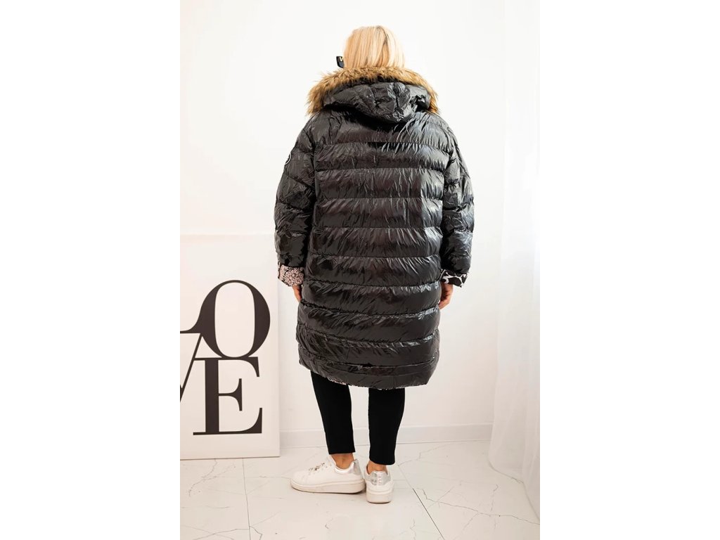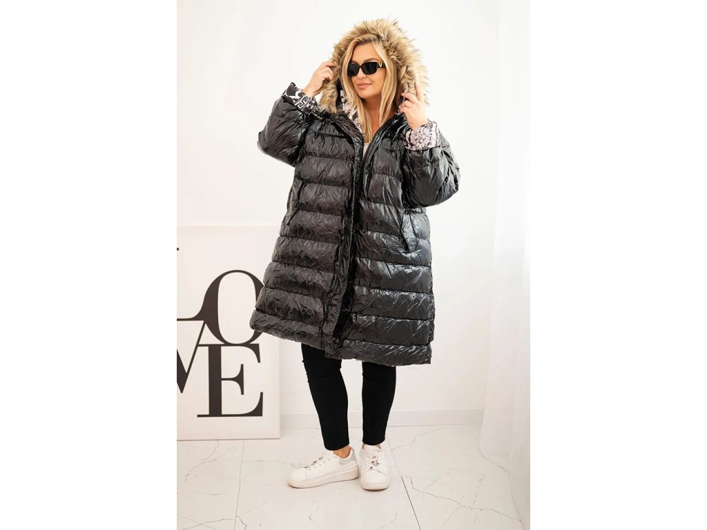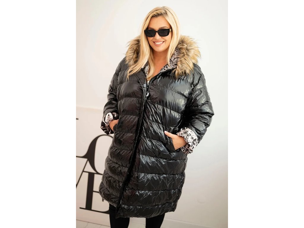 Dámská bunda Plus Size s kapucí a kožešinou černá