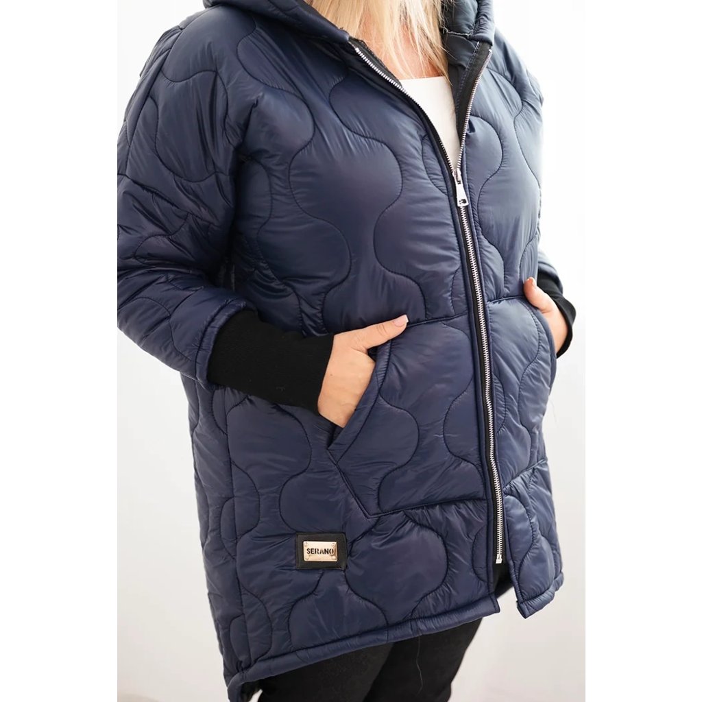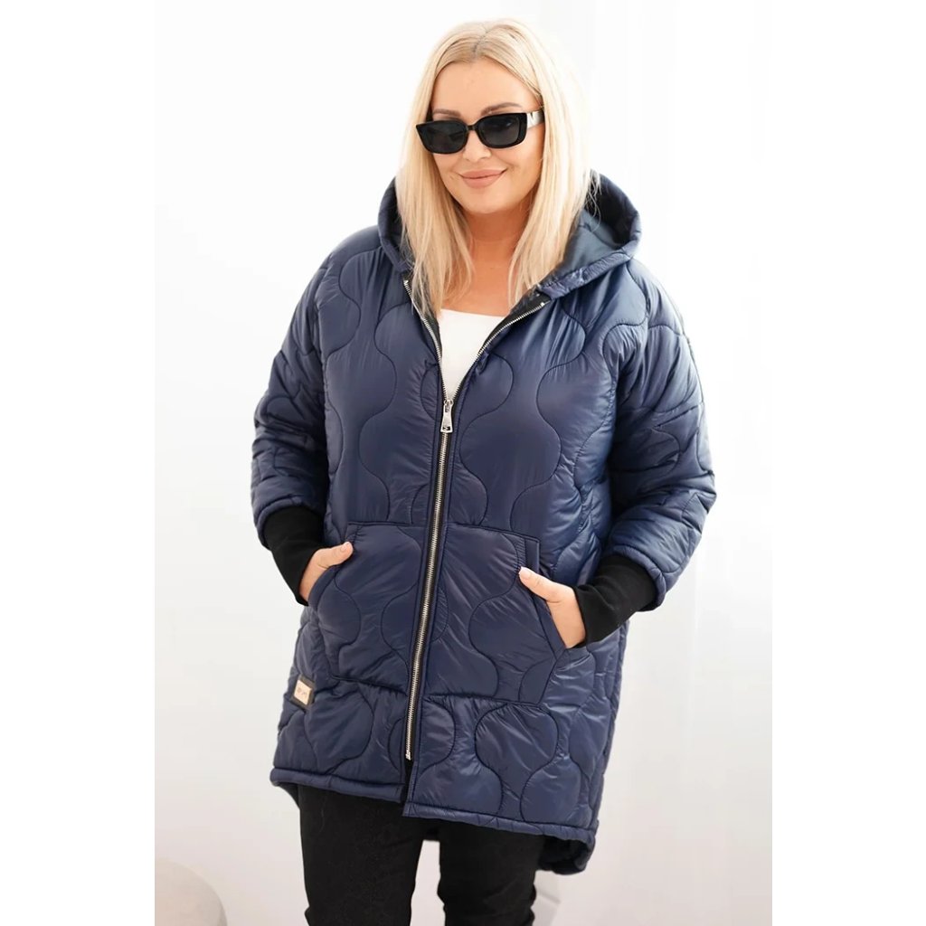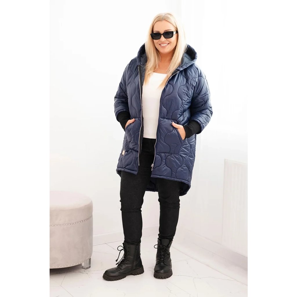 Dámská zimní bunda Plus Size prošívaná s kapucí granát