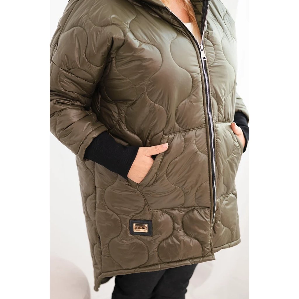 Dámská zimní bunda Plus Size prošívaná s kapucí khaki