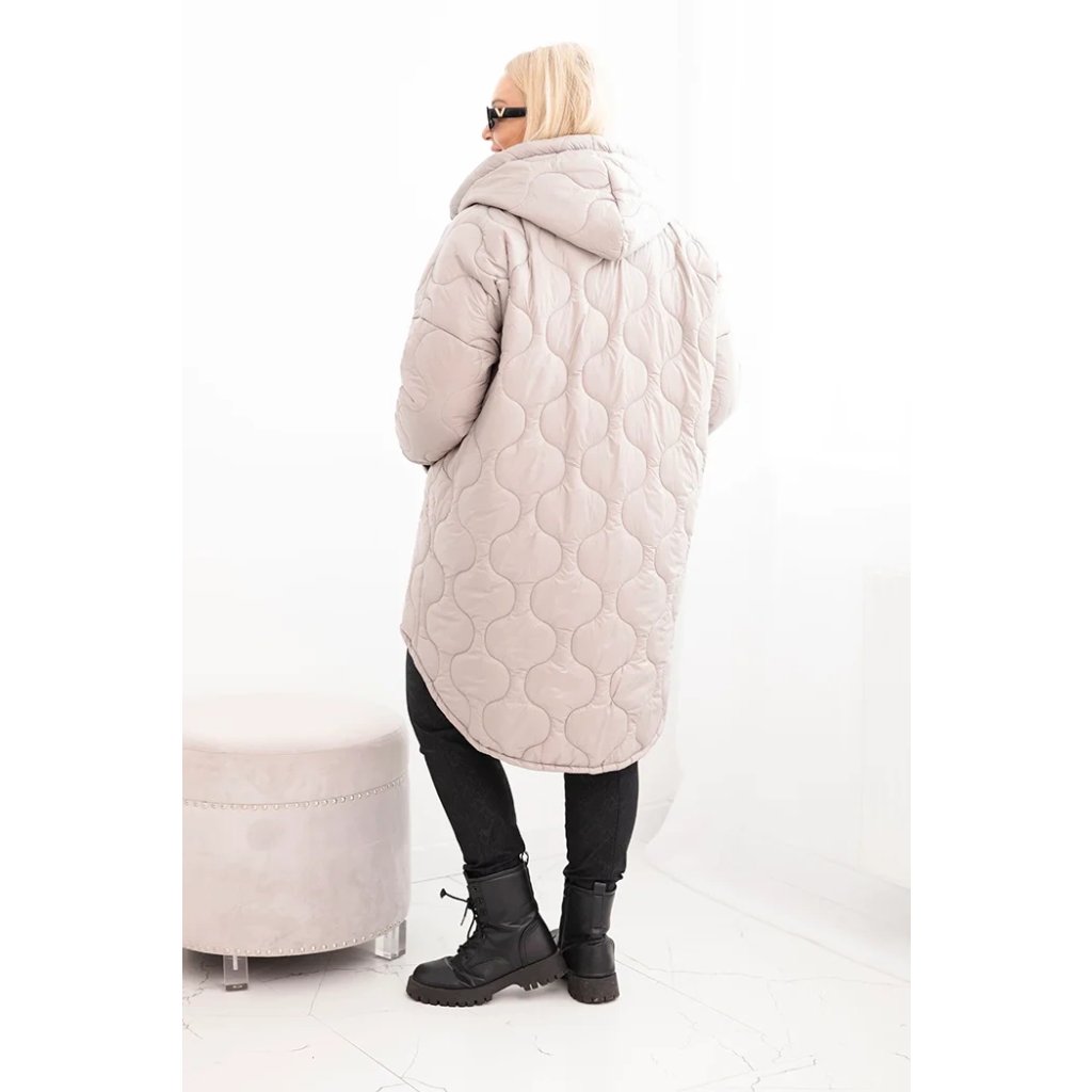 Dámská zimní bunda Plus Size prošívaná s kapucí tmavě béžová
