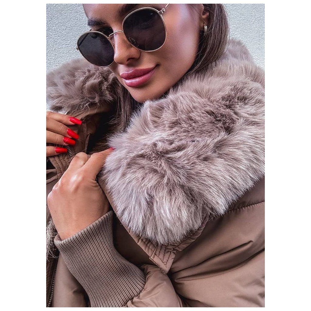 Klíčová slova: zimní bunda, kožešinový límec, prošívaná, oversize, zapínání na zip, stahovací lem, M–XXL, tři barvy, 100% polyester