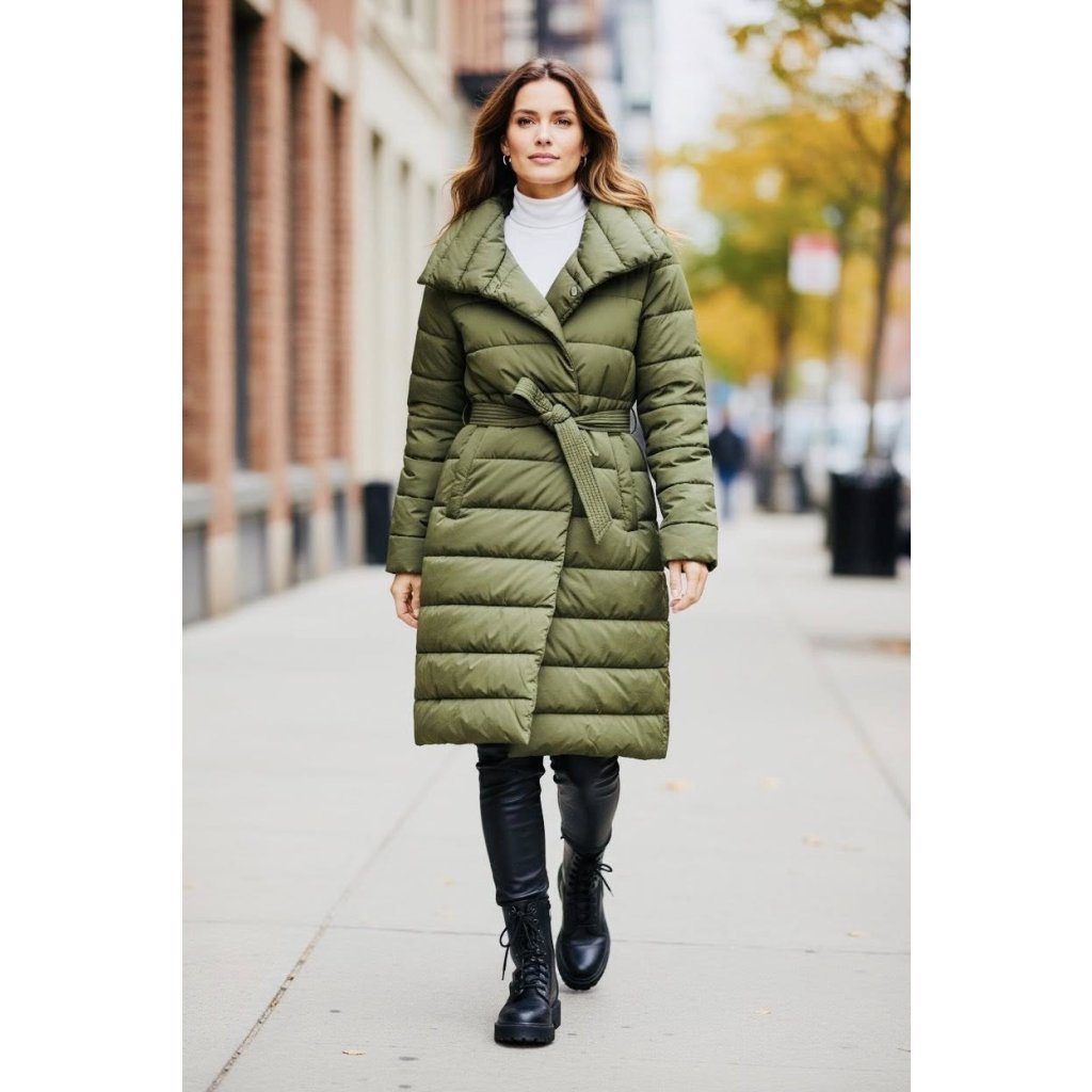 Dámský zimní kabát FLY OUT je ideální volbou pro chladné dny. Díky prošívanému designu, teplé výplni a vyššímu límci poskytuje maximální pohodlí a ochranu před zimou. Kabát má pásek na zavázání, který krásně zvýrazní pas, a elegantní midi délku, jež lichotí postavě.